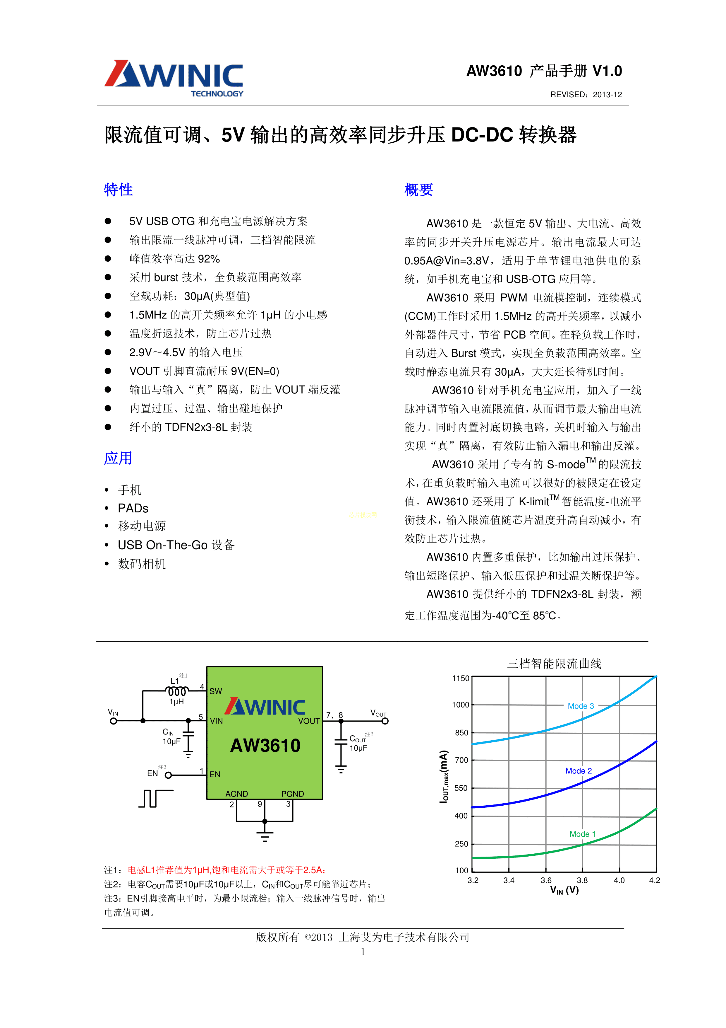 AW3610DNR数据手册TDFN2x3-8L封装AWINIC(艾为)PDF规格书,中英文下载