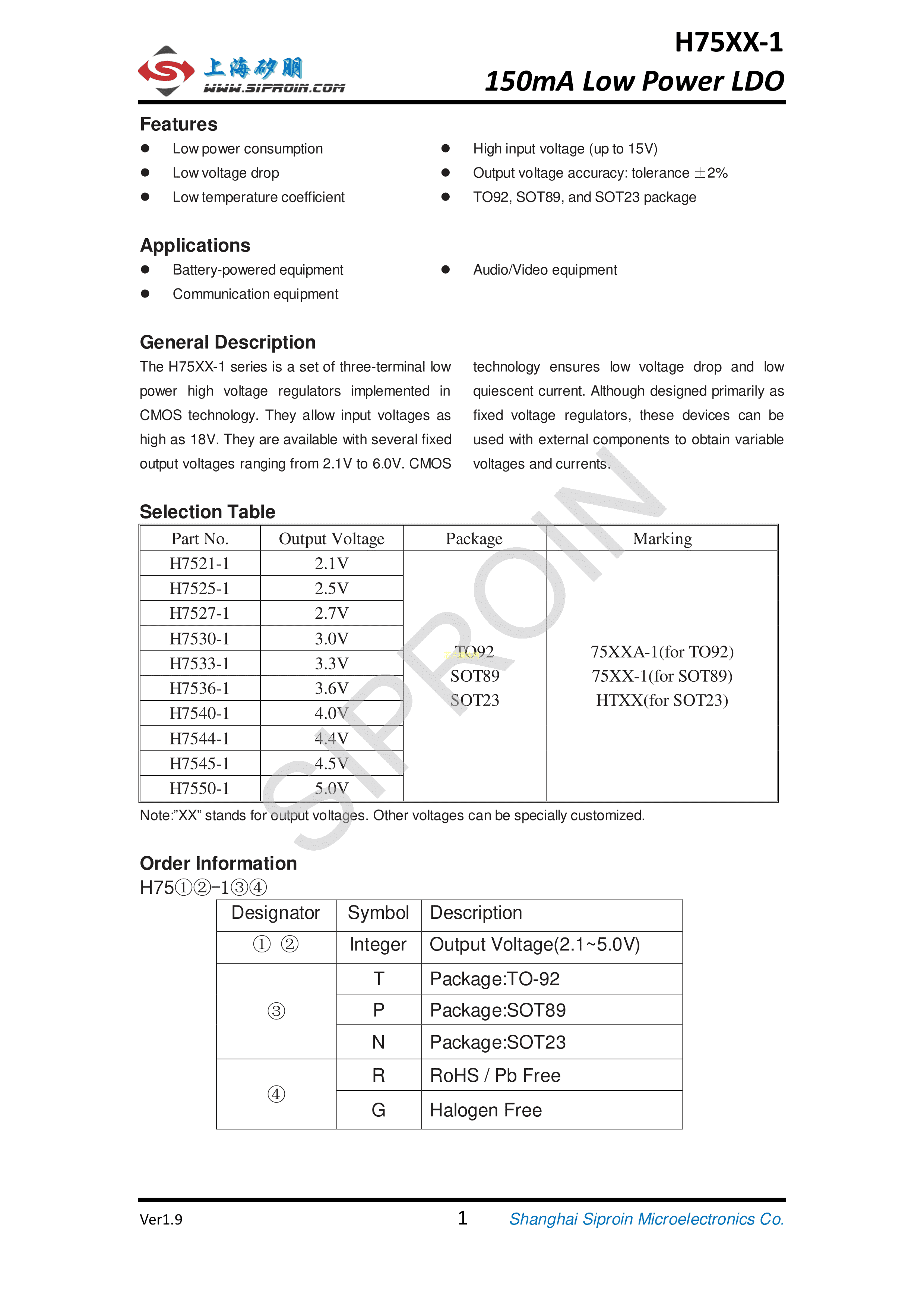 H7550-1数据手册SOT-89封装Siproin(上海矽朋)PDF规格书,中英文下载