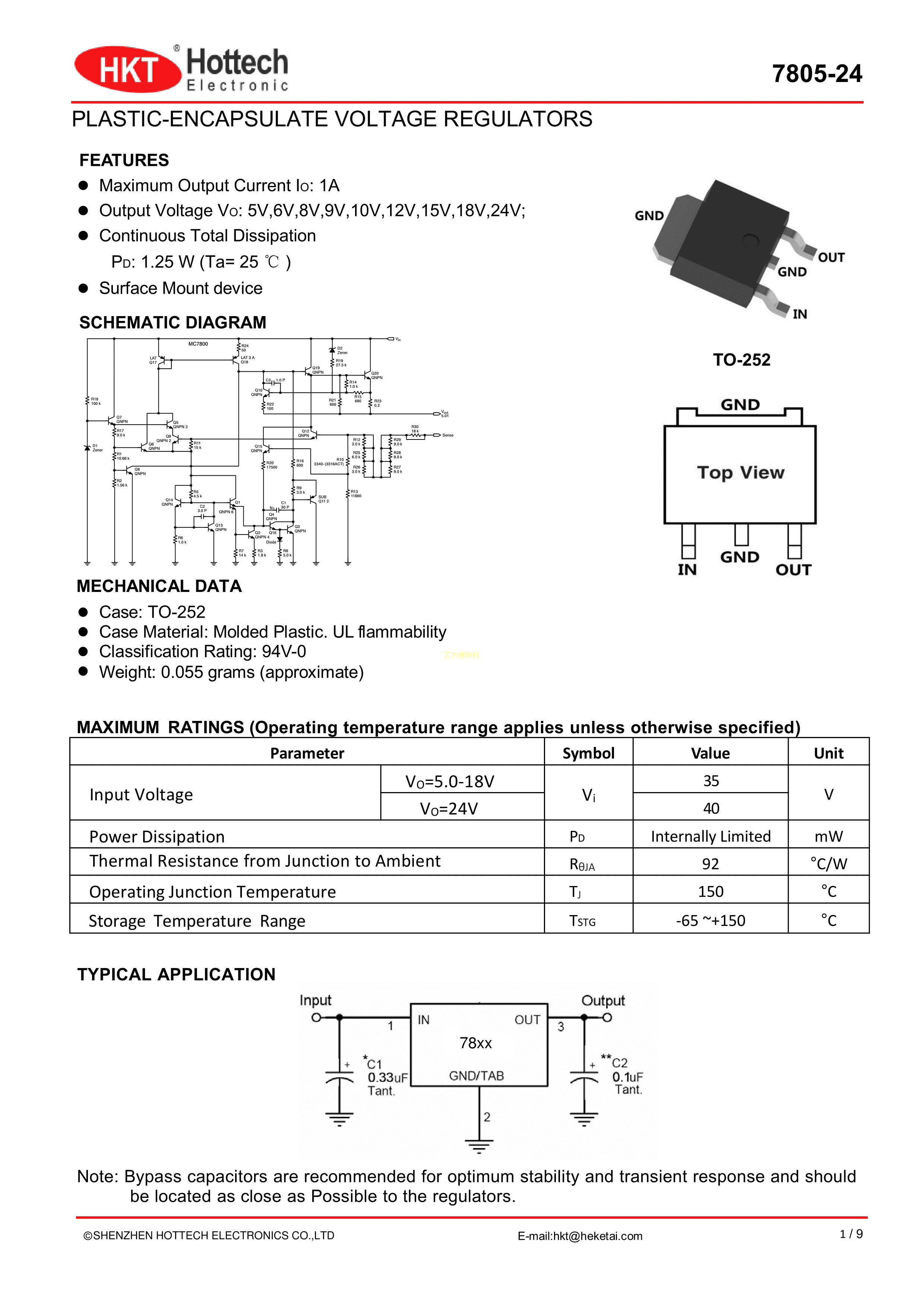 78M05数据手册TO-252-2(DPAK)封装Hottech(合科泰)PDF规格书,中英文下载