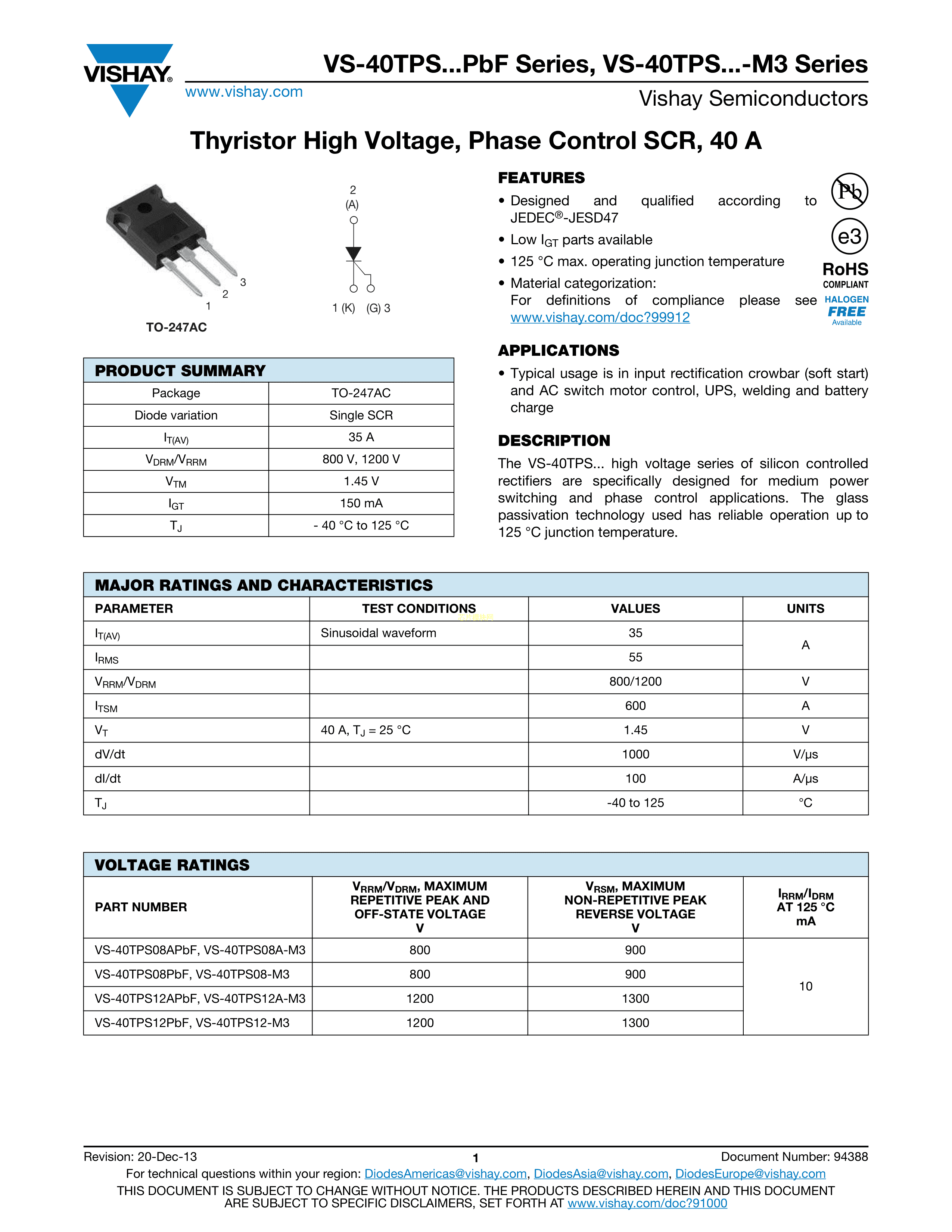 VS-40TPS12APBF数据手册TO-247AC封装VISHAY(威世)PDF规格书,中英文下载