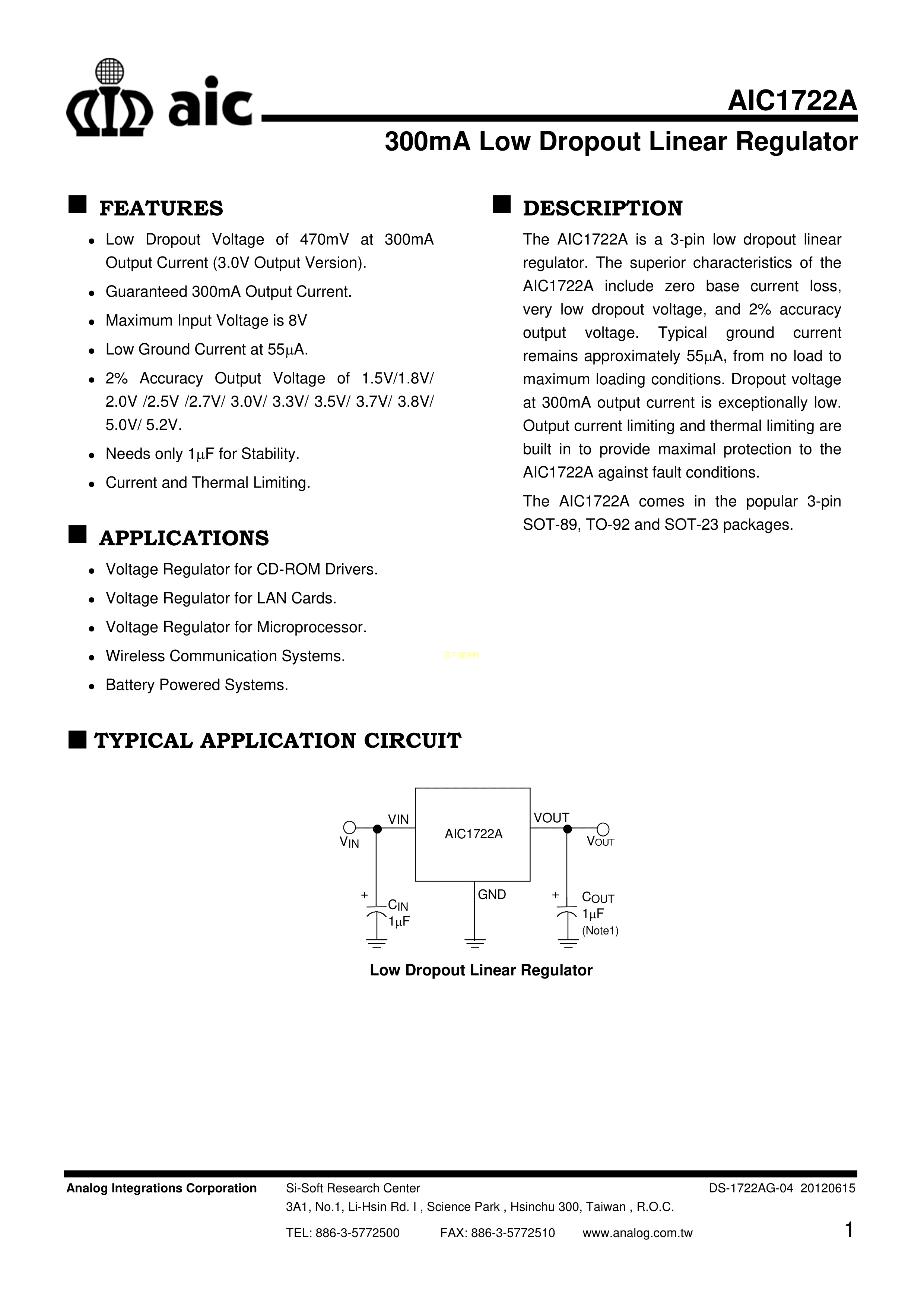 AIC1722A-33GXATR数据手册SOT-89(SOT-89-3)封装AIC(沛亨半导体)PD