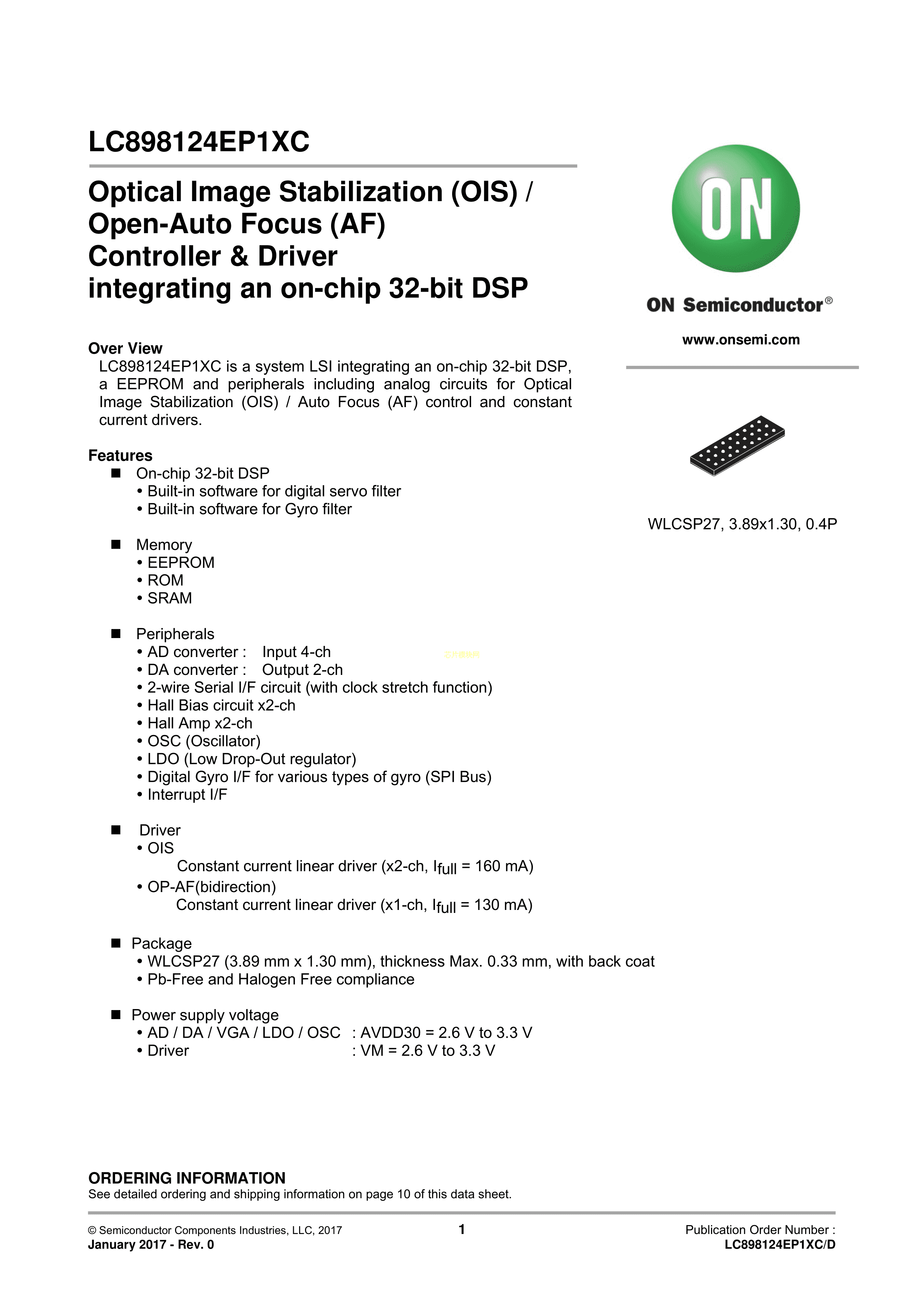 LC898124EP1XC-MH数据手册WLCSP27封装onsemi(安森美)PDF规格书,中英文