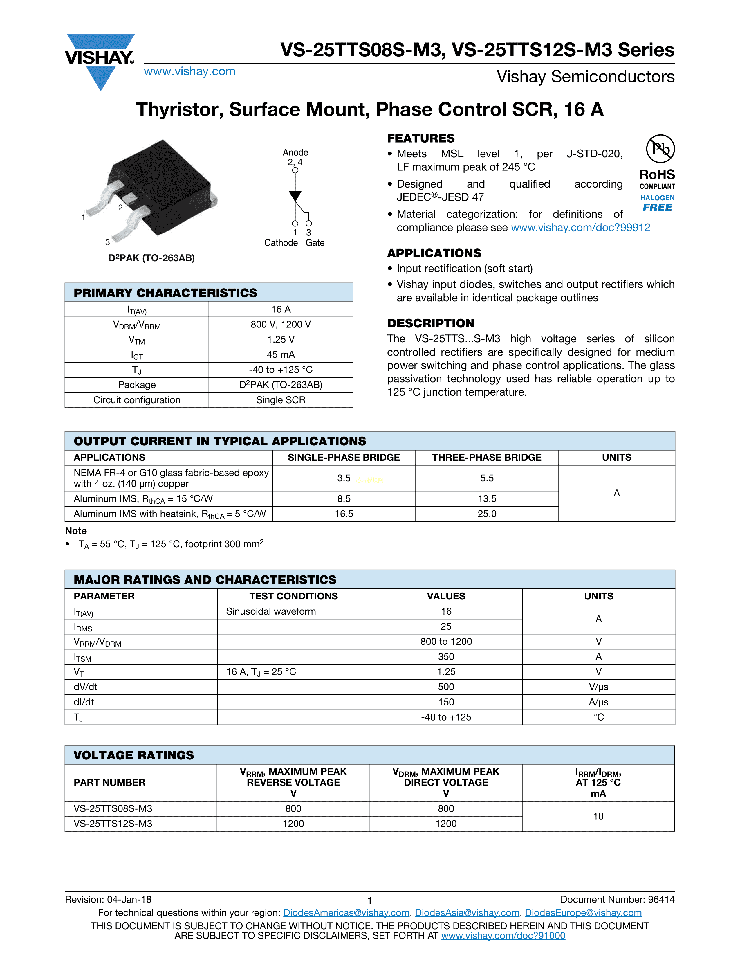 VS-25TTS12STRL-M3数据手册TO-263AB(D2PAK)封装VISHAY(威世)PD