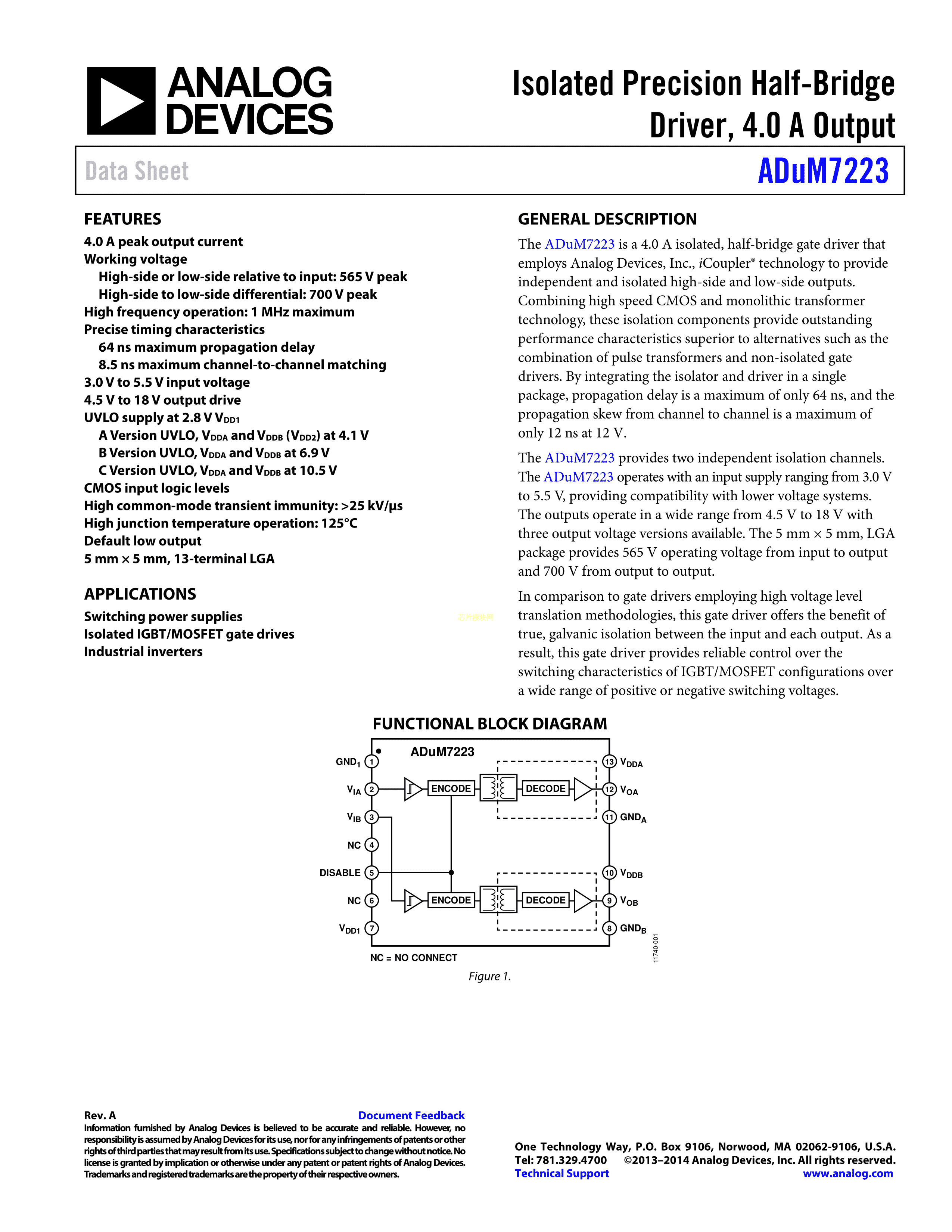 ADUM7223ACCZ数据手册LGA-13封装ADI(亚德诺)-LINEARPDF规格书,中英文下