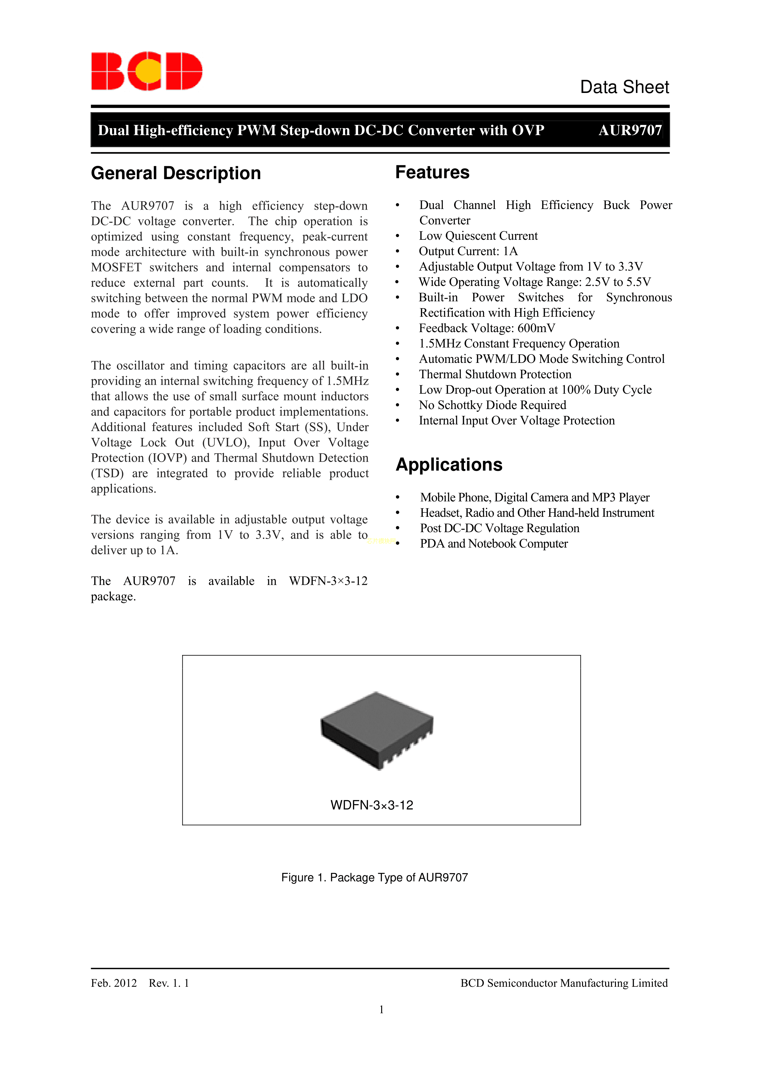 AUR9707AGD数据手册WDFN-12封装DIODES(美台)PDF规格书,中英文下载