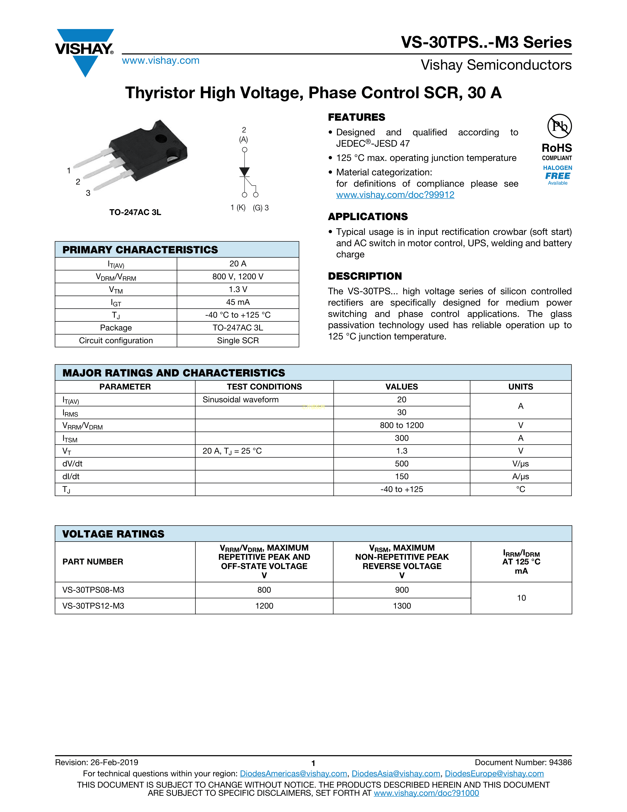 VS-30TPS08-M3数据手册TO-247AC封装VISHAY(威世)PDF规格书,中英文下载