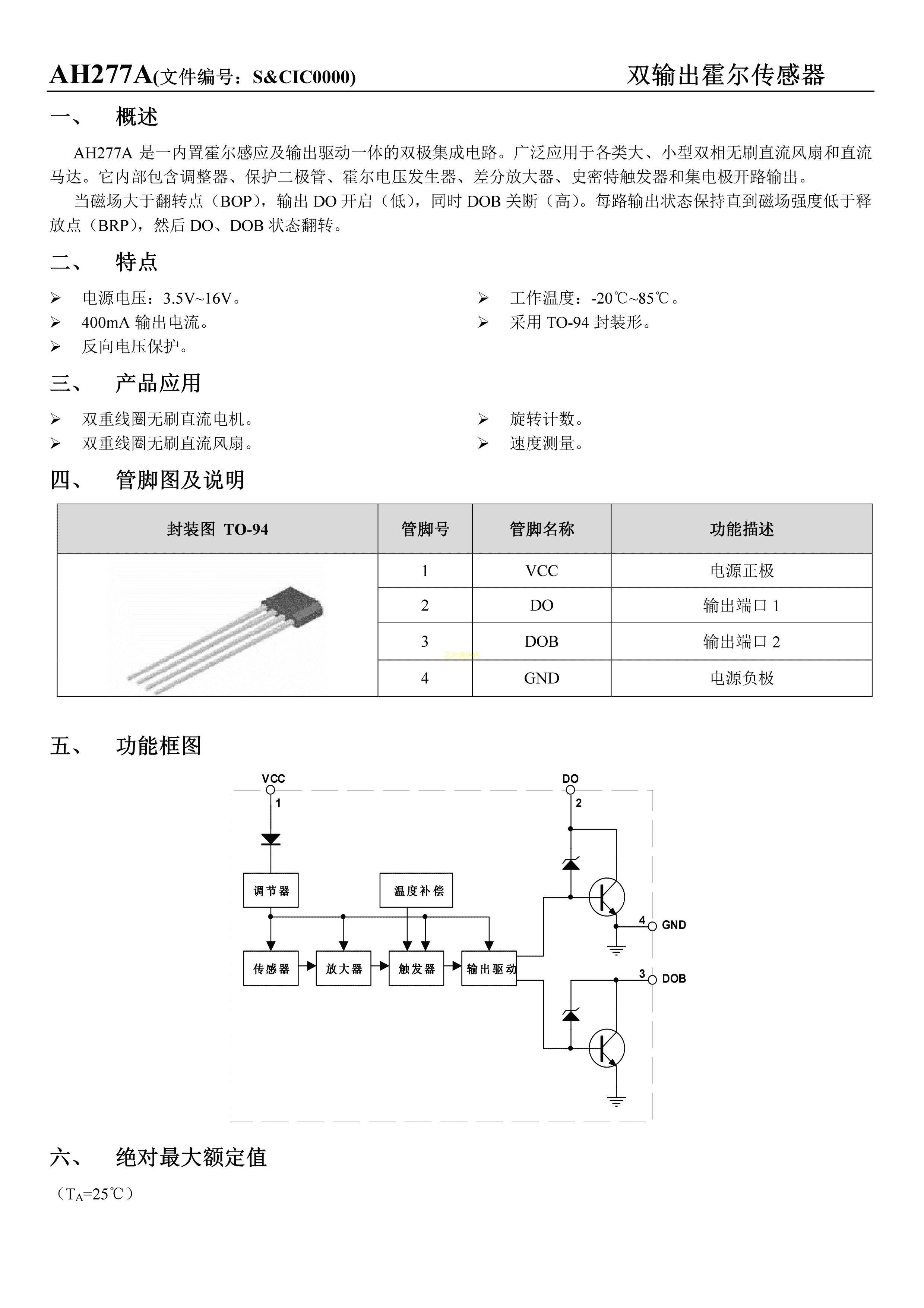 AH277数据手册TO-94封装FM(富满)PDF规格书,中英文下载