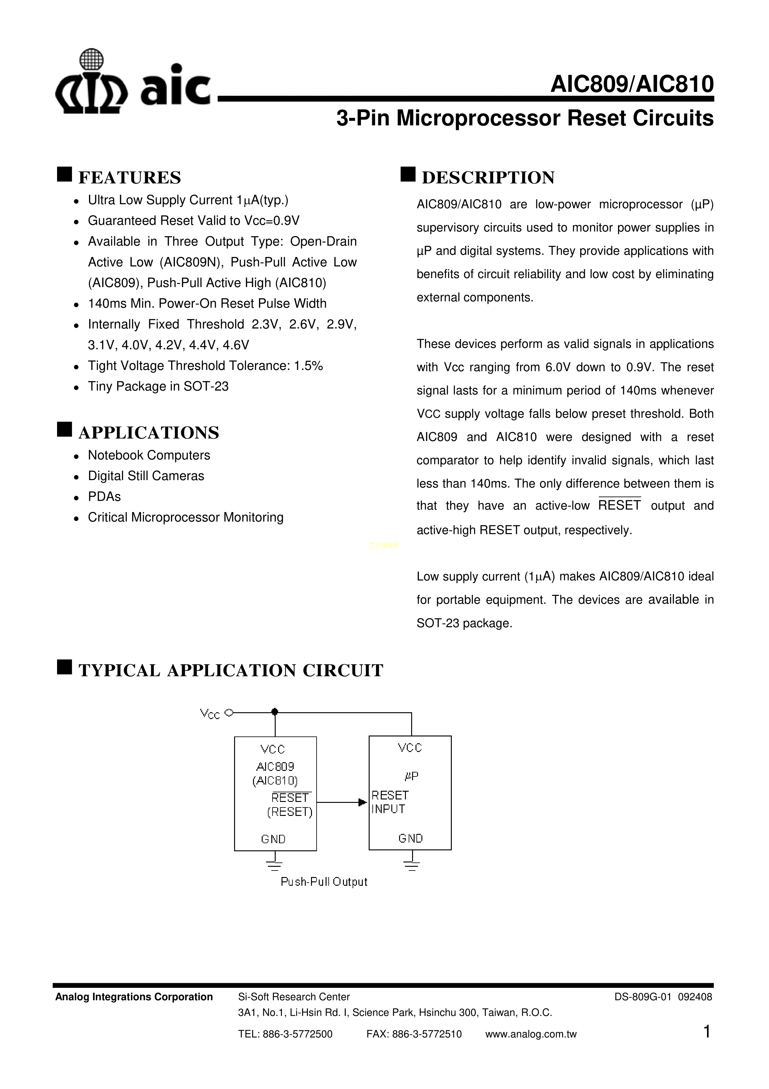 AIC809-29GUTR数据手册SOT-23封装AIC(沛亨半导体)PDF规格书,中英文下载