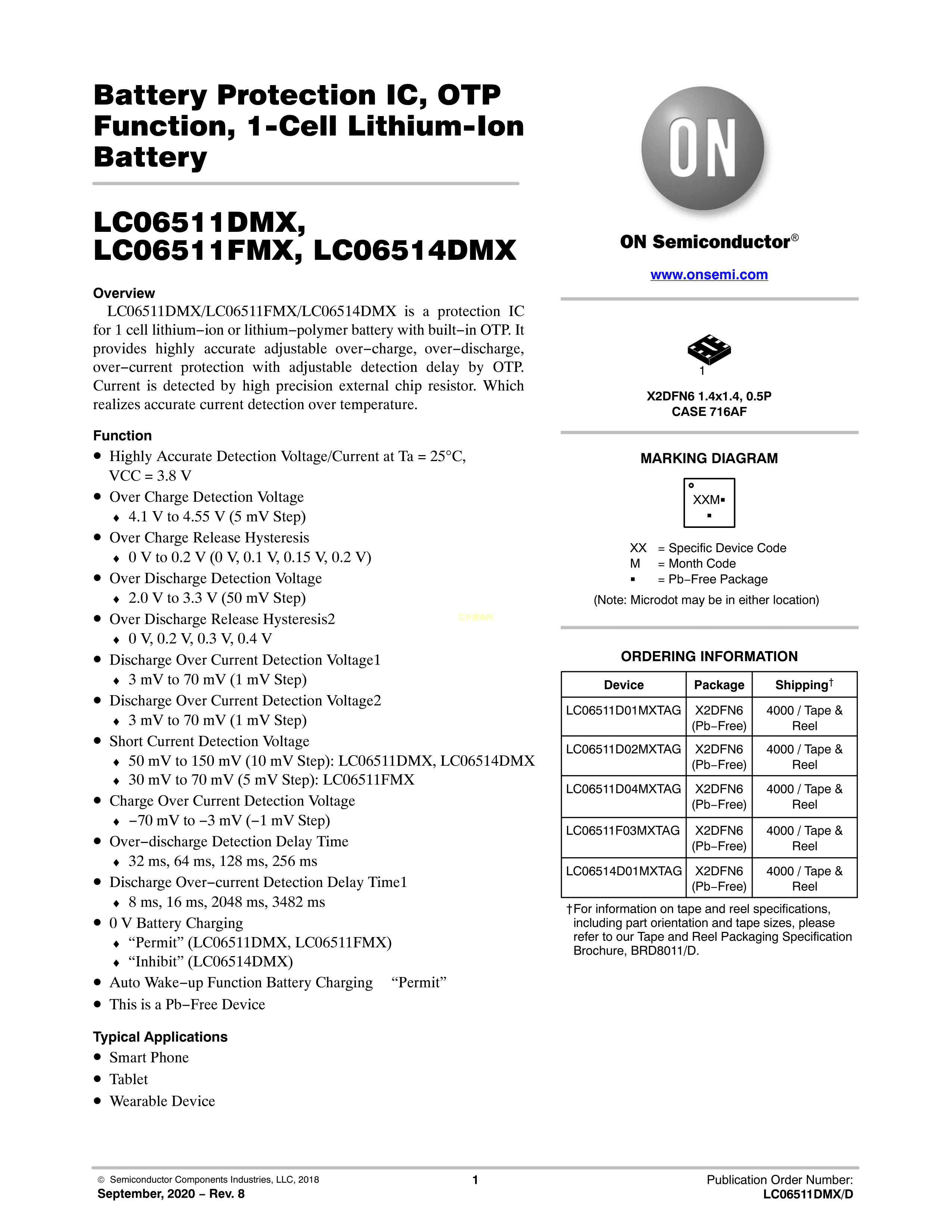 LC06511D04MXTAG数据手册X2DFN-6封装onsemi(安森美)PDF规格书,中英文下