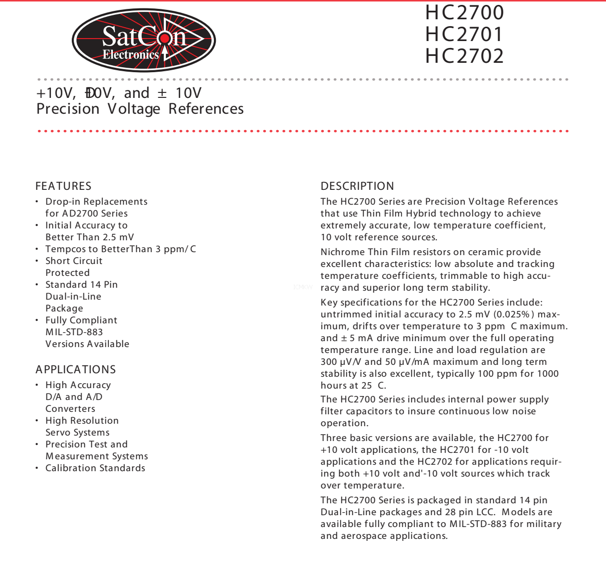 HC2702,非常精确、温度系数低, 10伏参考源芯片PDF规格书下载