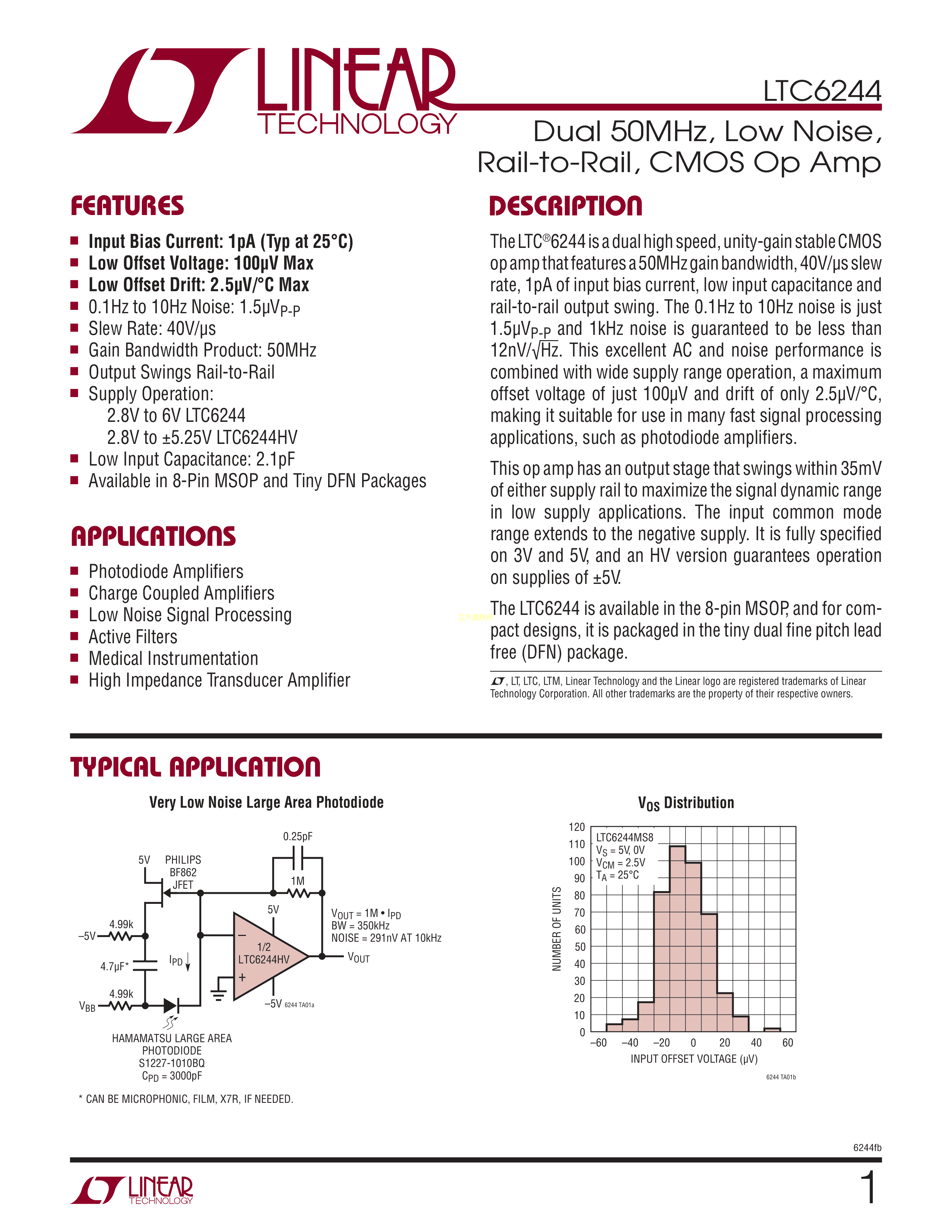 LTC6244HVHDD#PBF数据手册DFN-8封装ADI(亚德诺)-LINEARPDF规格书,中英文下载