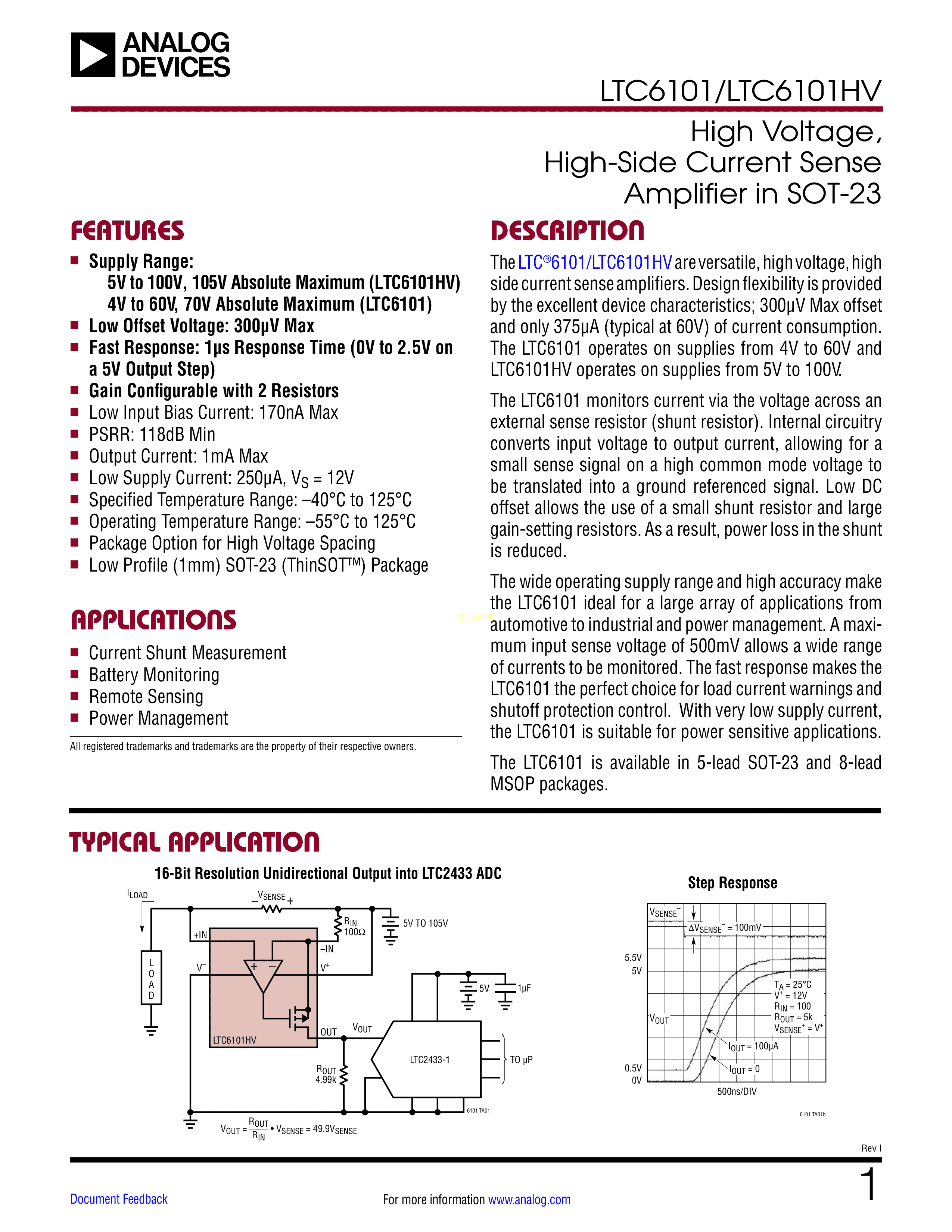LTC6101HVAHMS8#TRPBF数据手册MSOP-8封装ADI(亚德诺)-LINEARPDF规格书,中英文下载