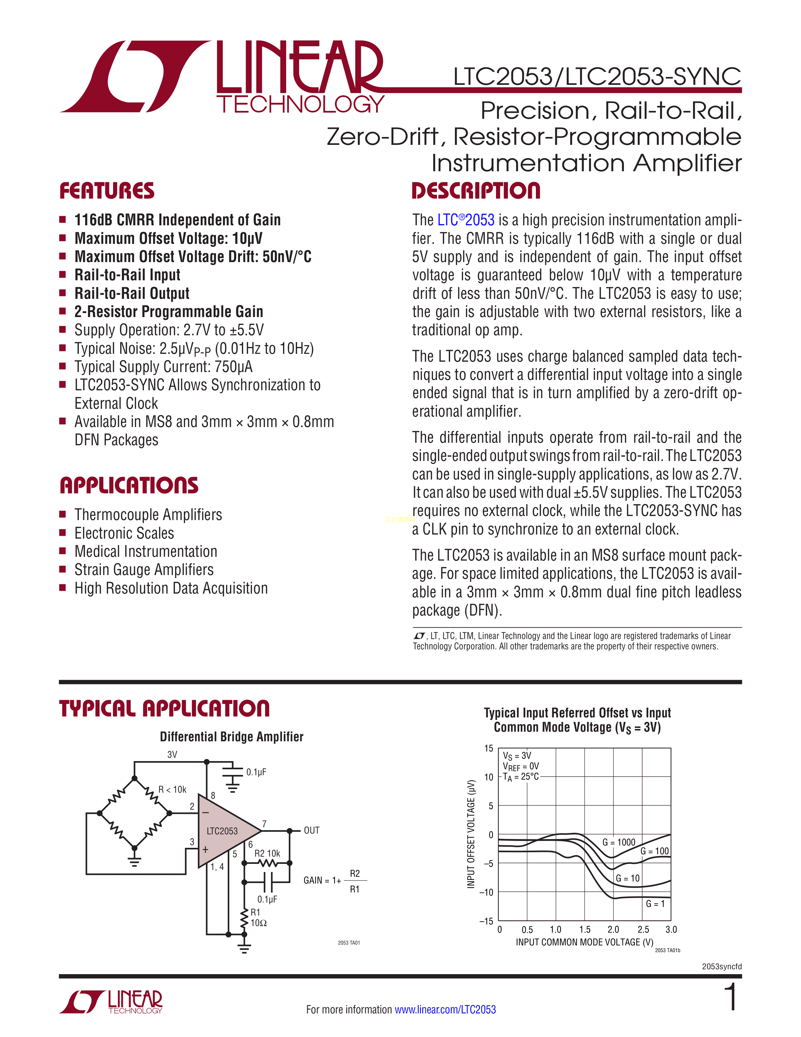 LTC2053IMS8-SYNC#PBF数据手册MSOP-8封装ADI(亚德诺)-LINEARPDF规格书,中英文下载