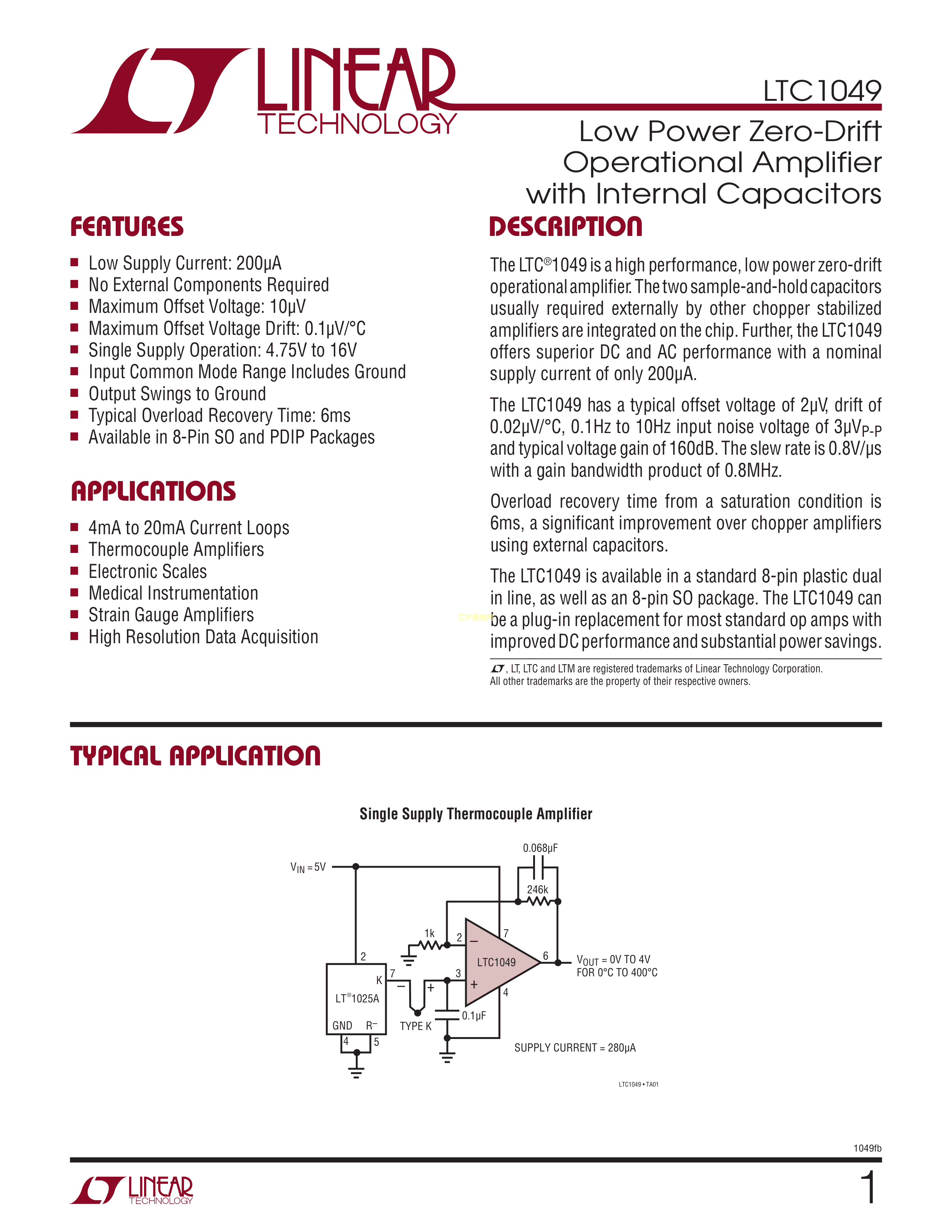 LTC1049CS8#PBF数据手册SO-8封装ADI(亚德诺)-LINEARPDF规格书,中英文下载