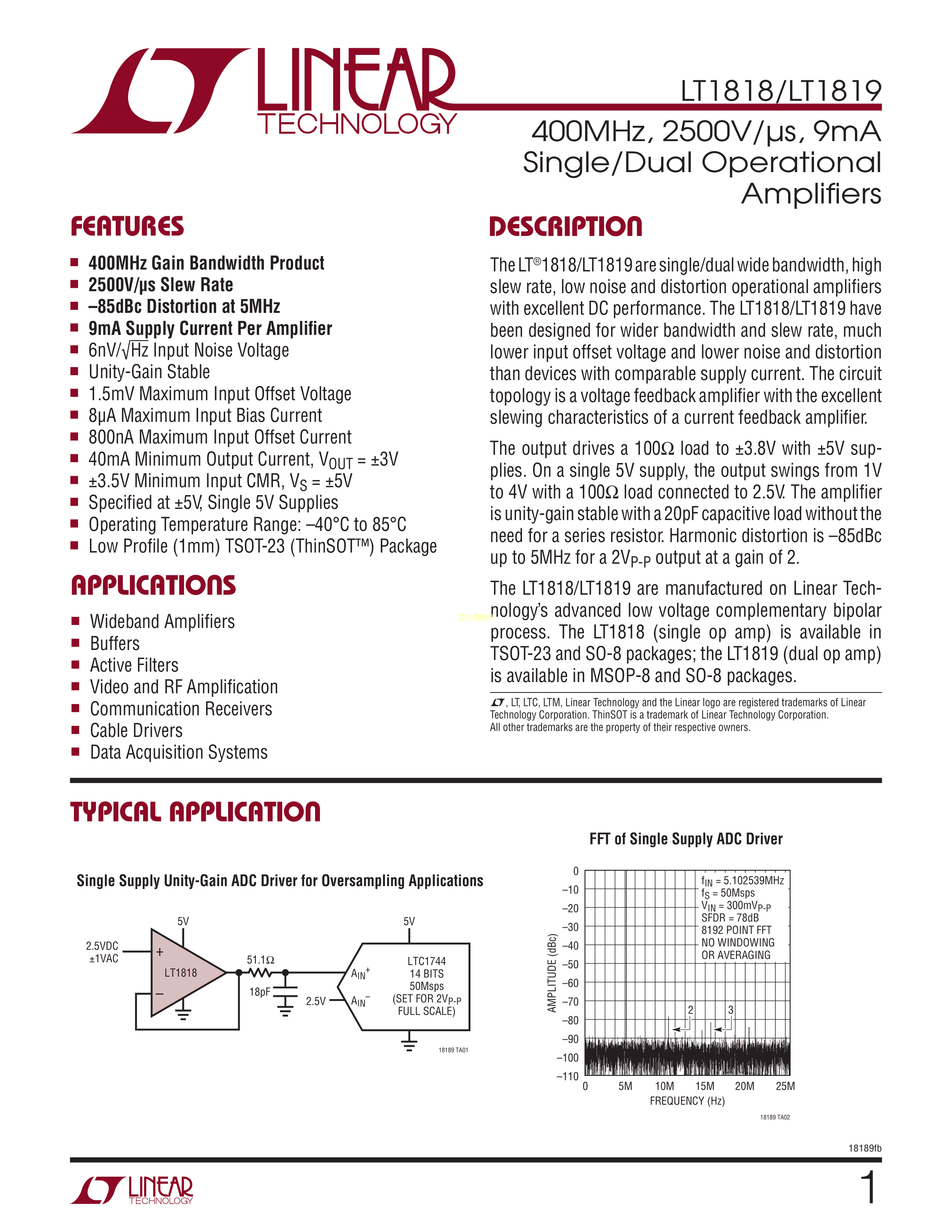 LT1818IS8#TRPBF数据手册SO-8封装ADI(亚德诺)-LINEARPDF规格书,中英文下载