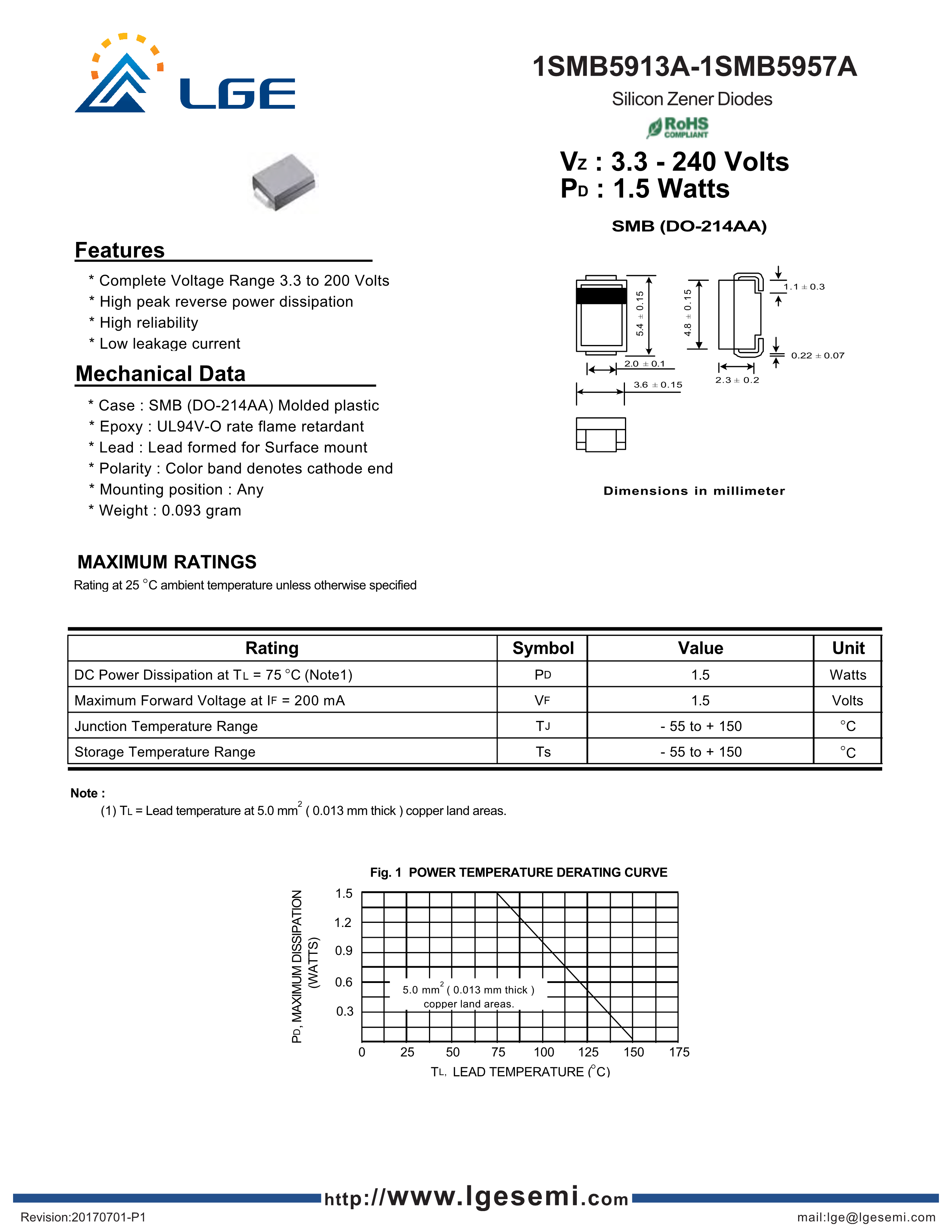 1SMB5936B数据手册SMB封装LGE(鲁光)PDF规格书,中英文下载