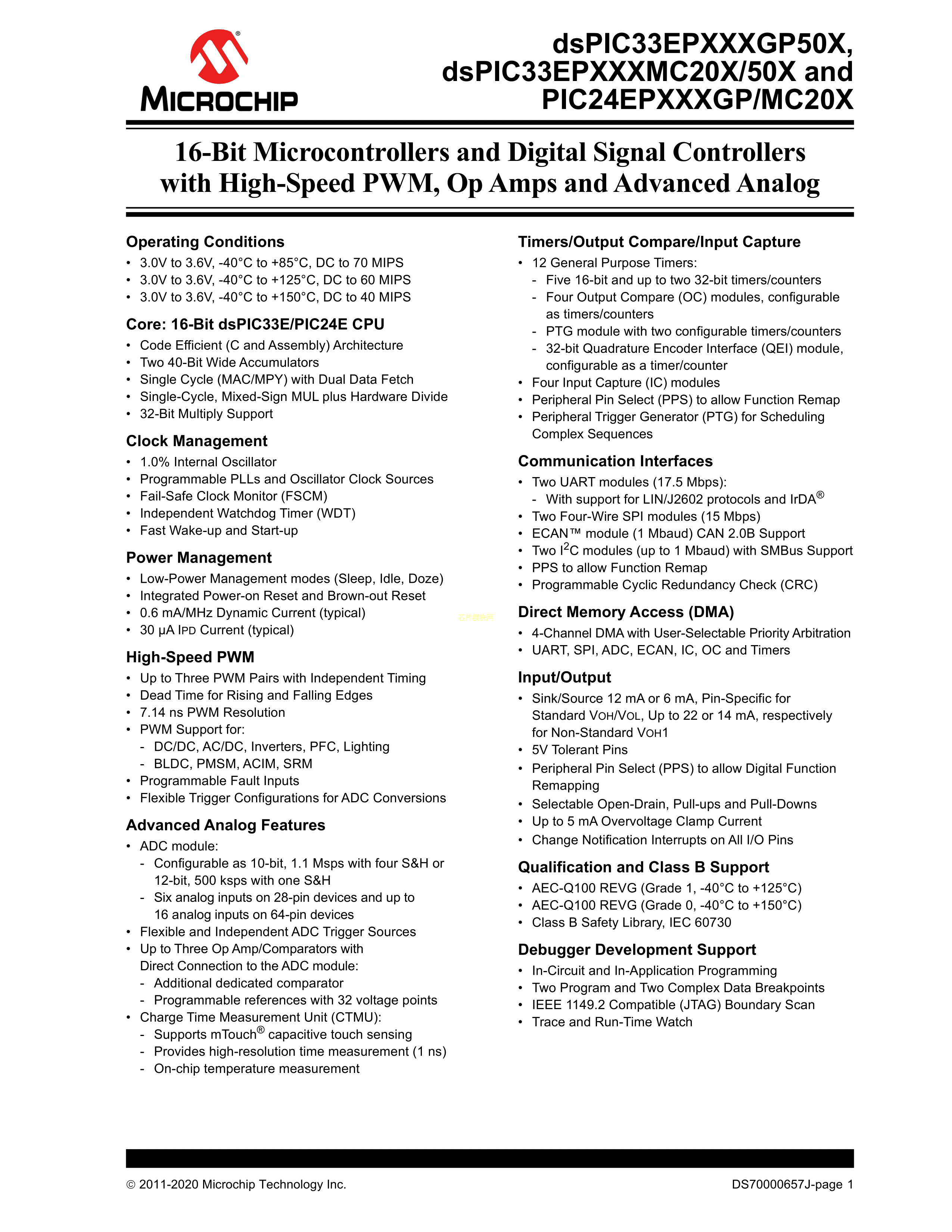 dsPIC33EP256GP502-E-MM数据手册QFN-28封装MICROCHIP(美国微芯)P