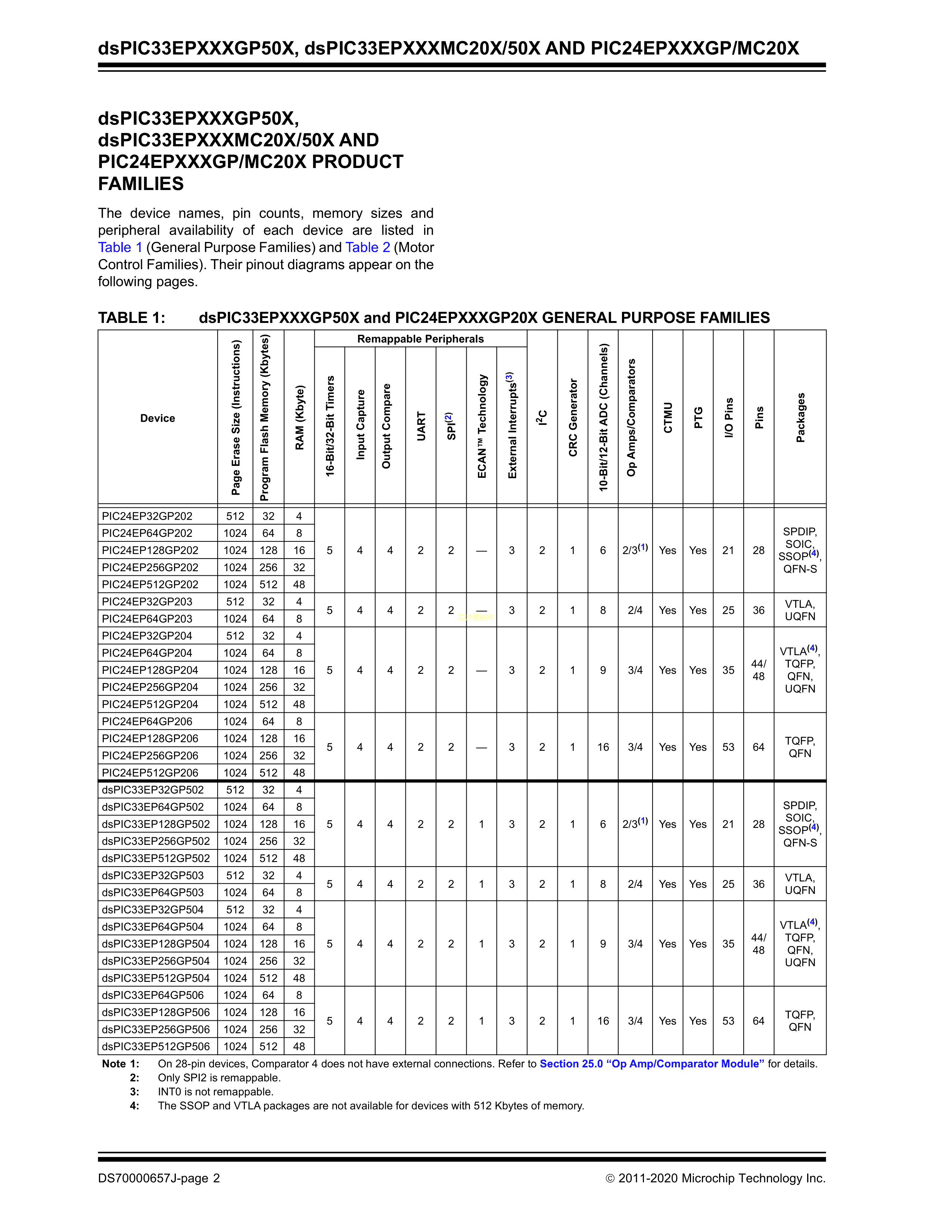 dsPIC33EP64MC204-I-TL数据手册VTLA-44封装MICROCHIP(美国微芯)PDF规格书,中英文下载
