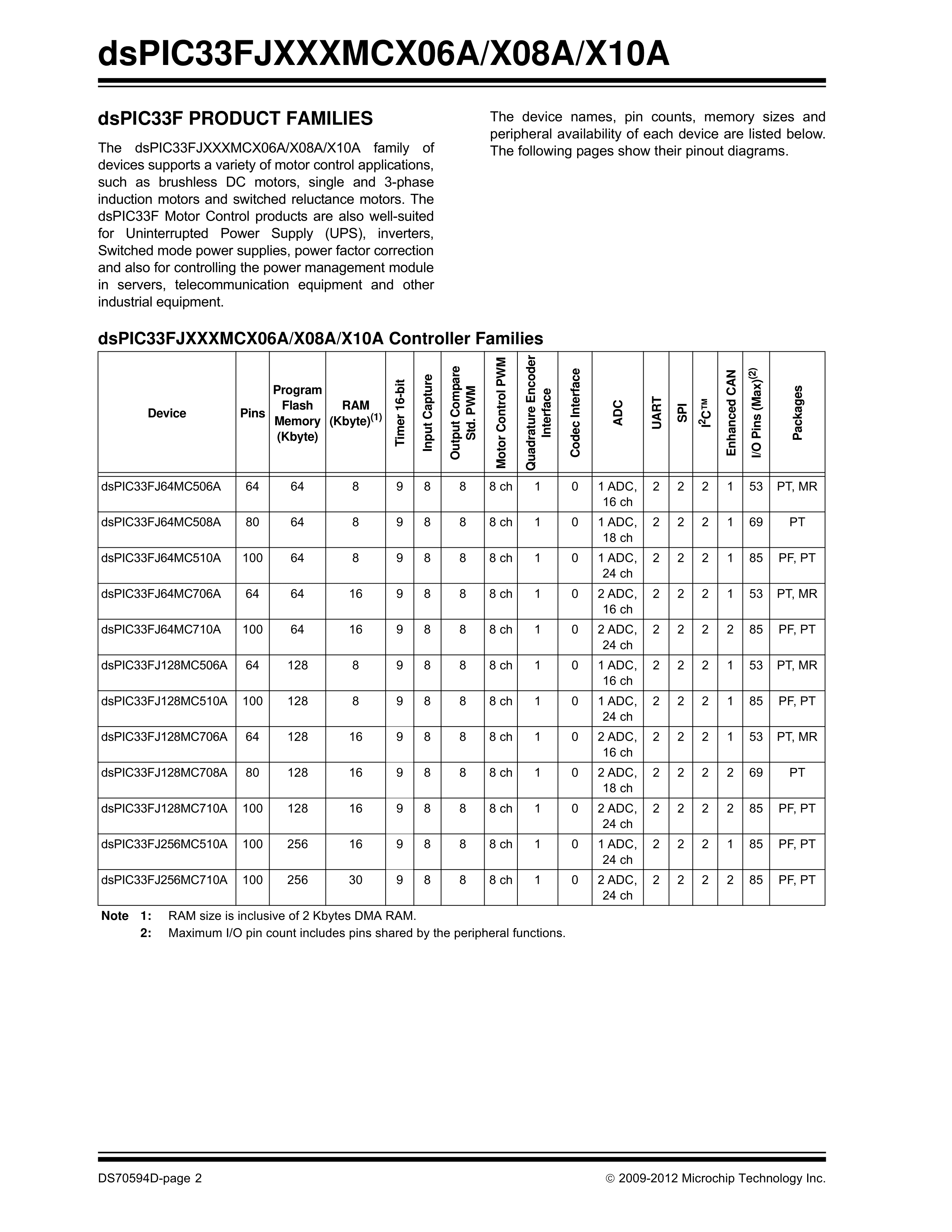 dsPIC33FJ256MC710A-H-PF数据手册TQFP-100封装MICROCHIP(美国微