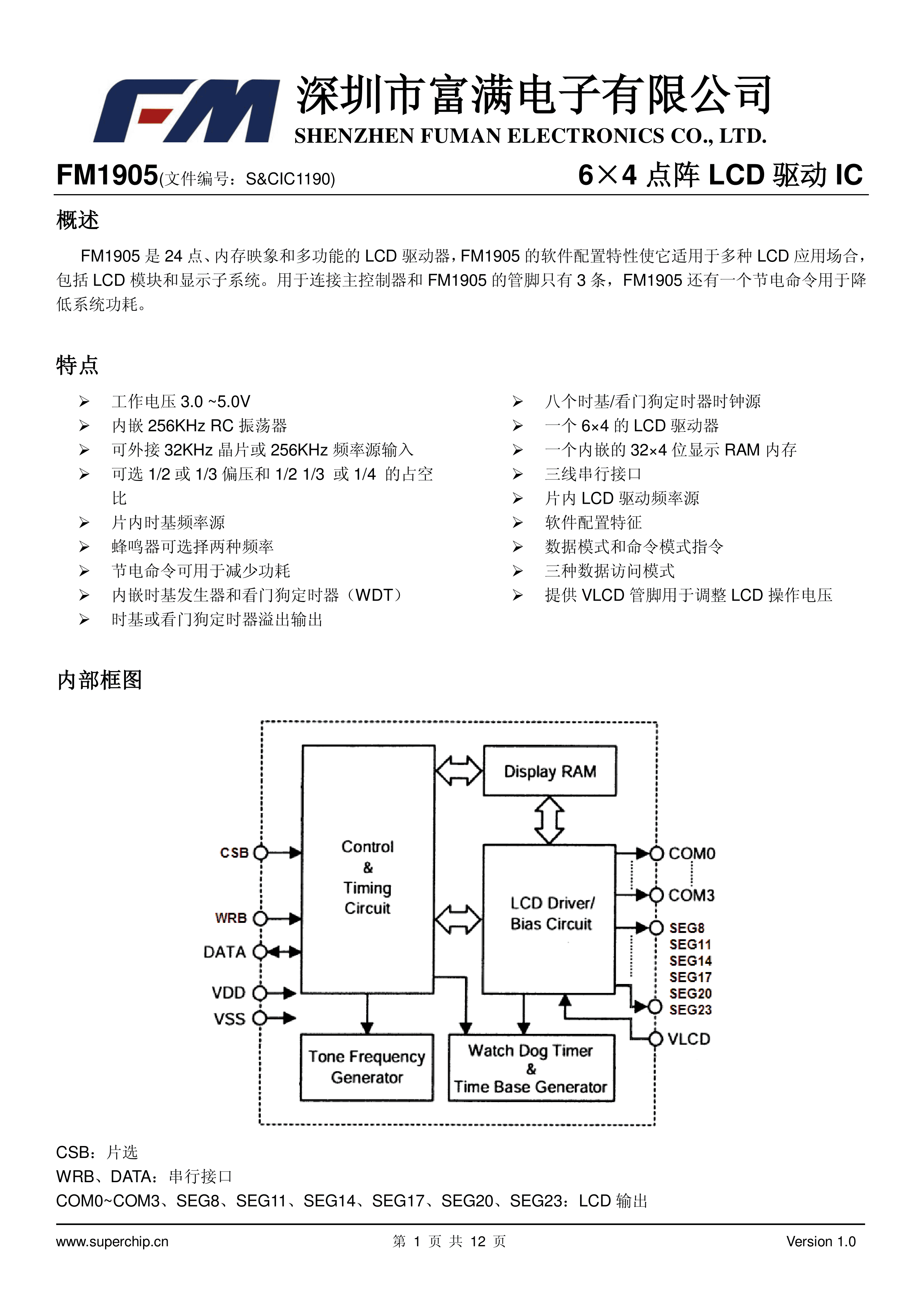 fm1905数据手册SOP-16_150mil封装FM(富满)PDF规格书,中英文下载