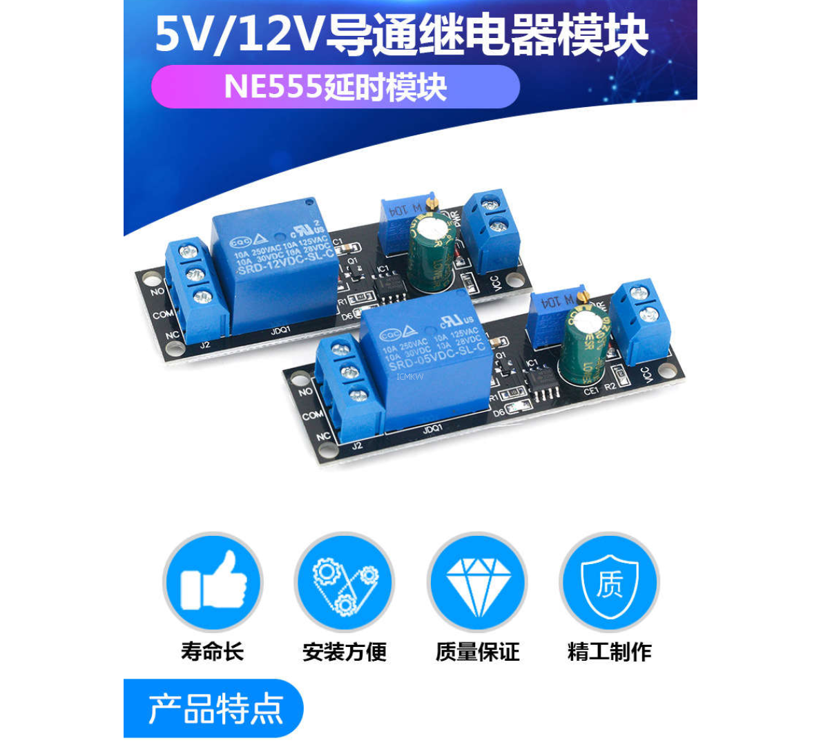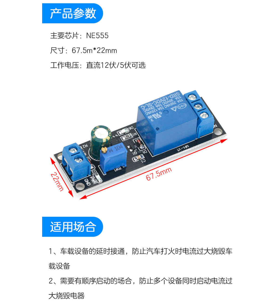 NE555延时模块12V导通继电器模块延时单稳态开关延时开关汽车电器
