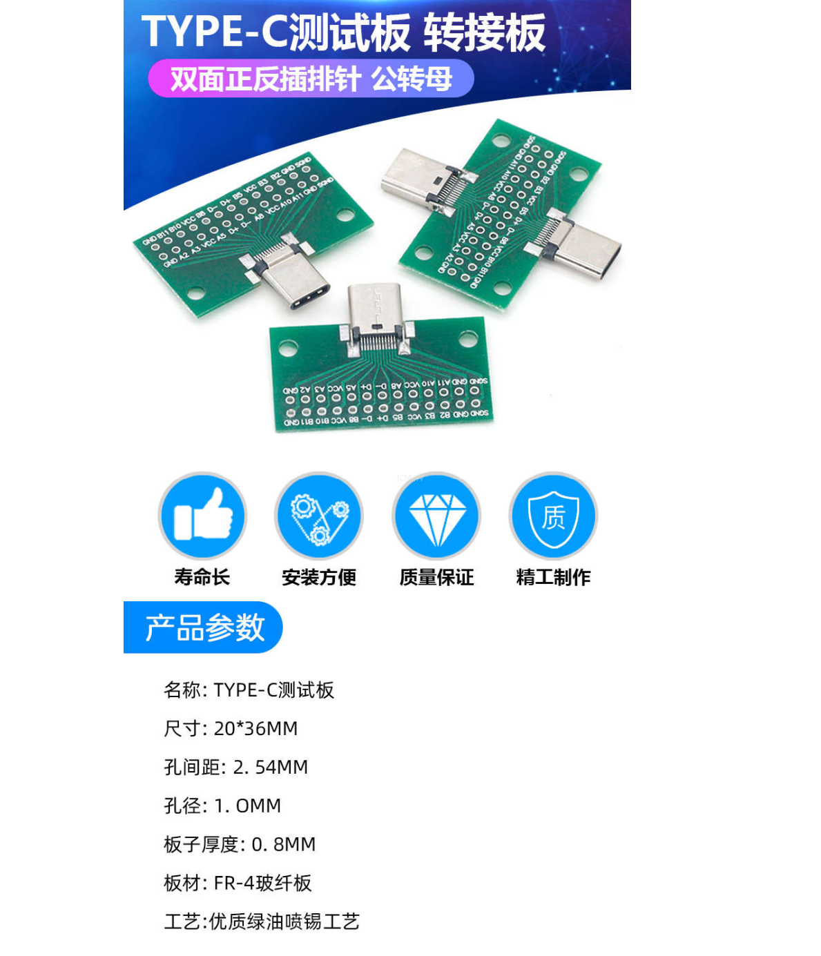 TYPE-C测试板双面正反 公转母