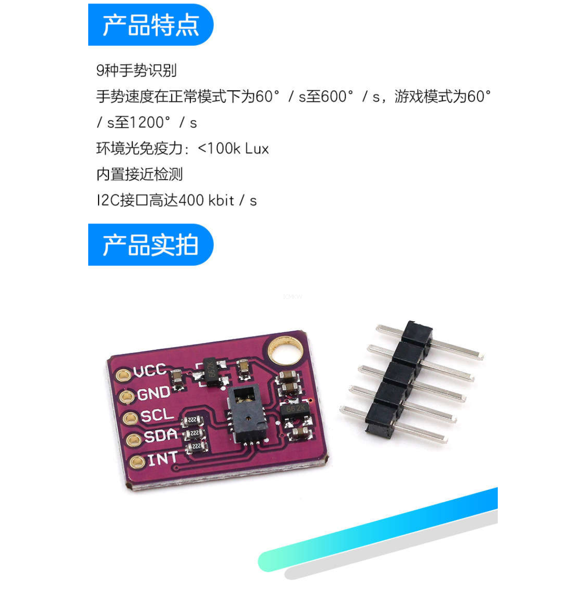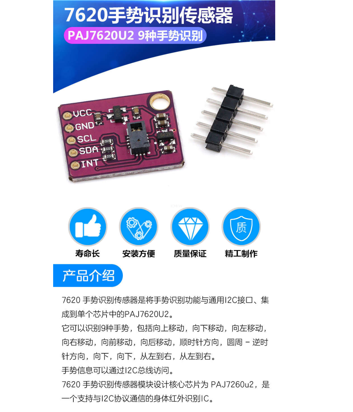 PAJ7620U2手势识别传感器模块 内置9种手势识别/IIC接口/智能识别