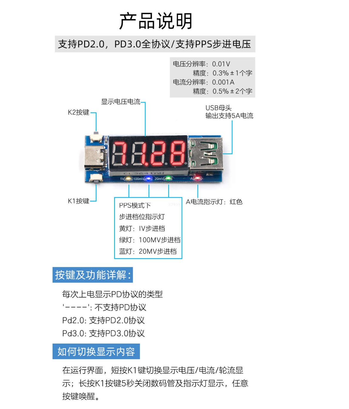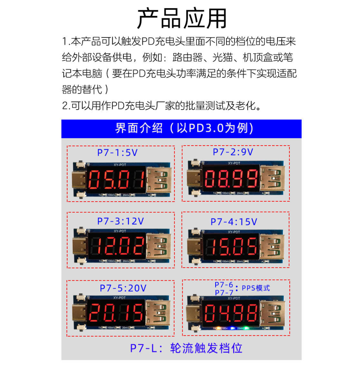 Type-C PD快充触发器诱骗器DC数显电压电流表检测试仪表全协议PPS