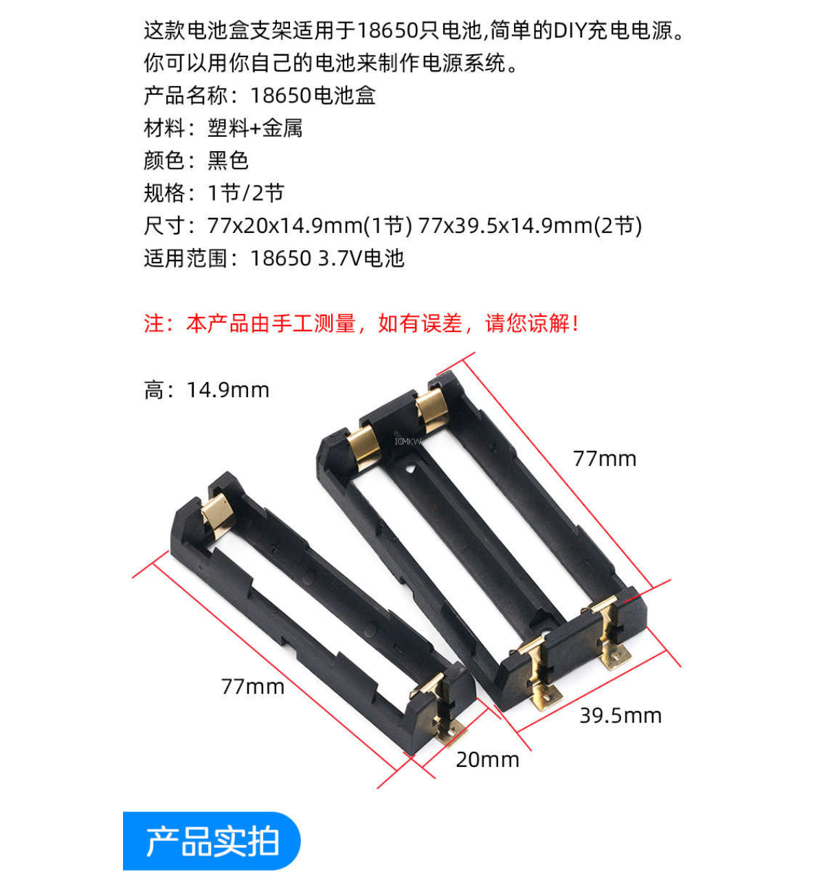 18650电池盒 单/双节 SMT贴片 直插 1/2节18650 贴片电池座 SMD