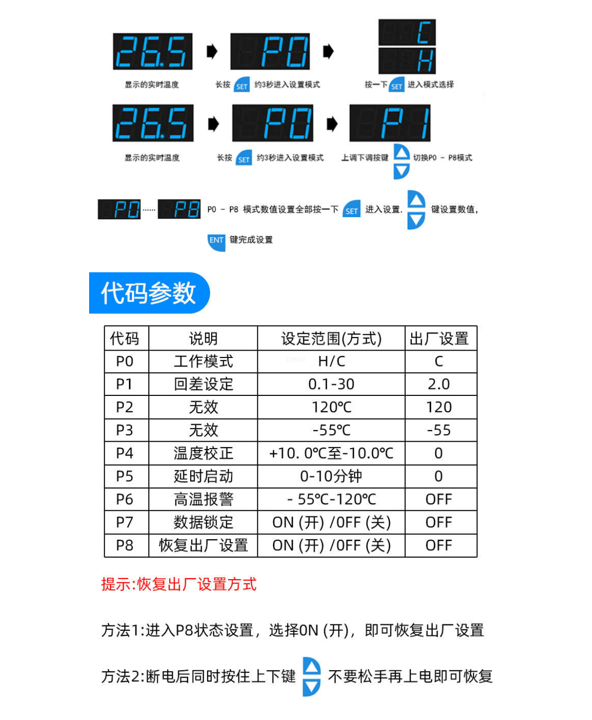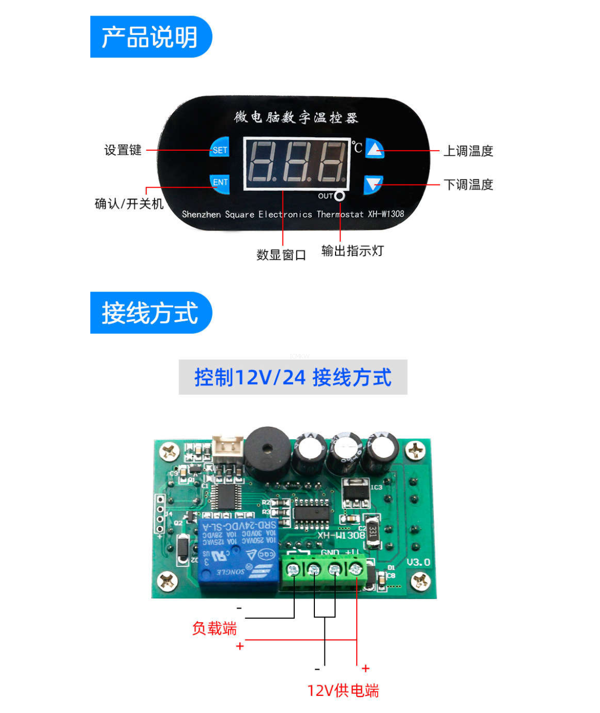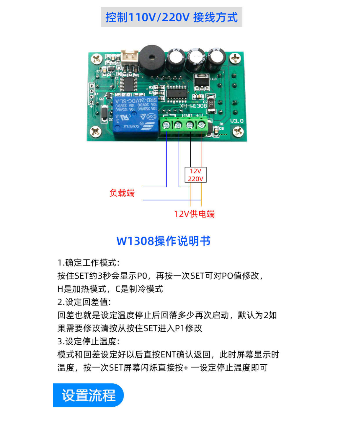 XTWH-W1308 温控器 数显温度控制器开关制冷/加热控制 可调数字