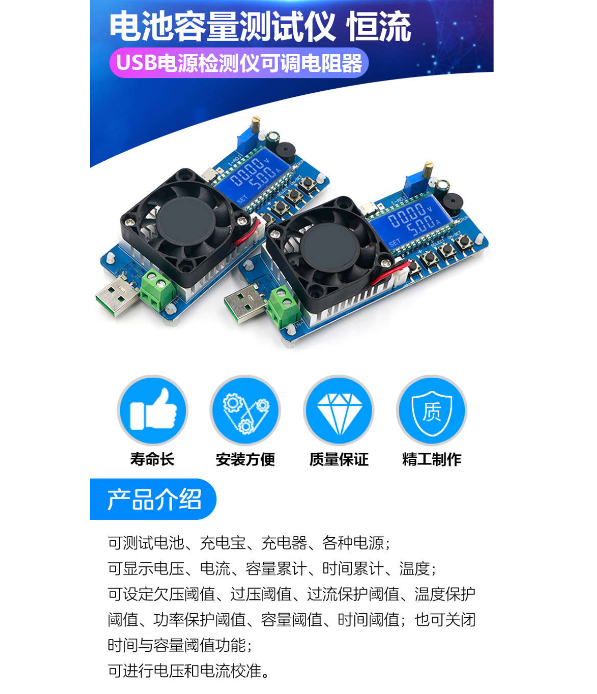 USB电源检测仪可调电阻器 电池容量测试仪 恒流电子负载