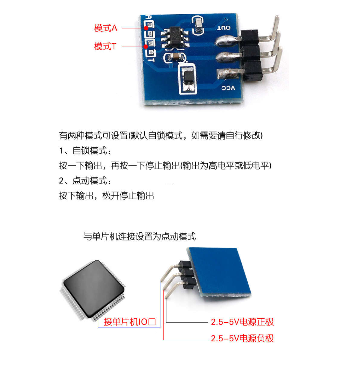 触摸按键模块 电容式 开关 可设置自锁 点动模式 TTP223