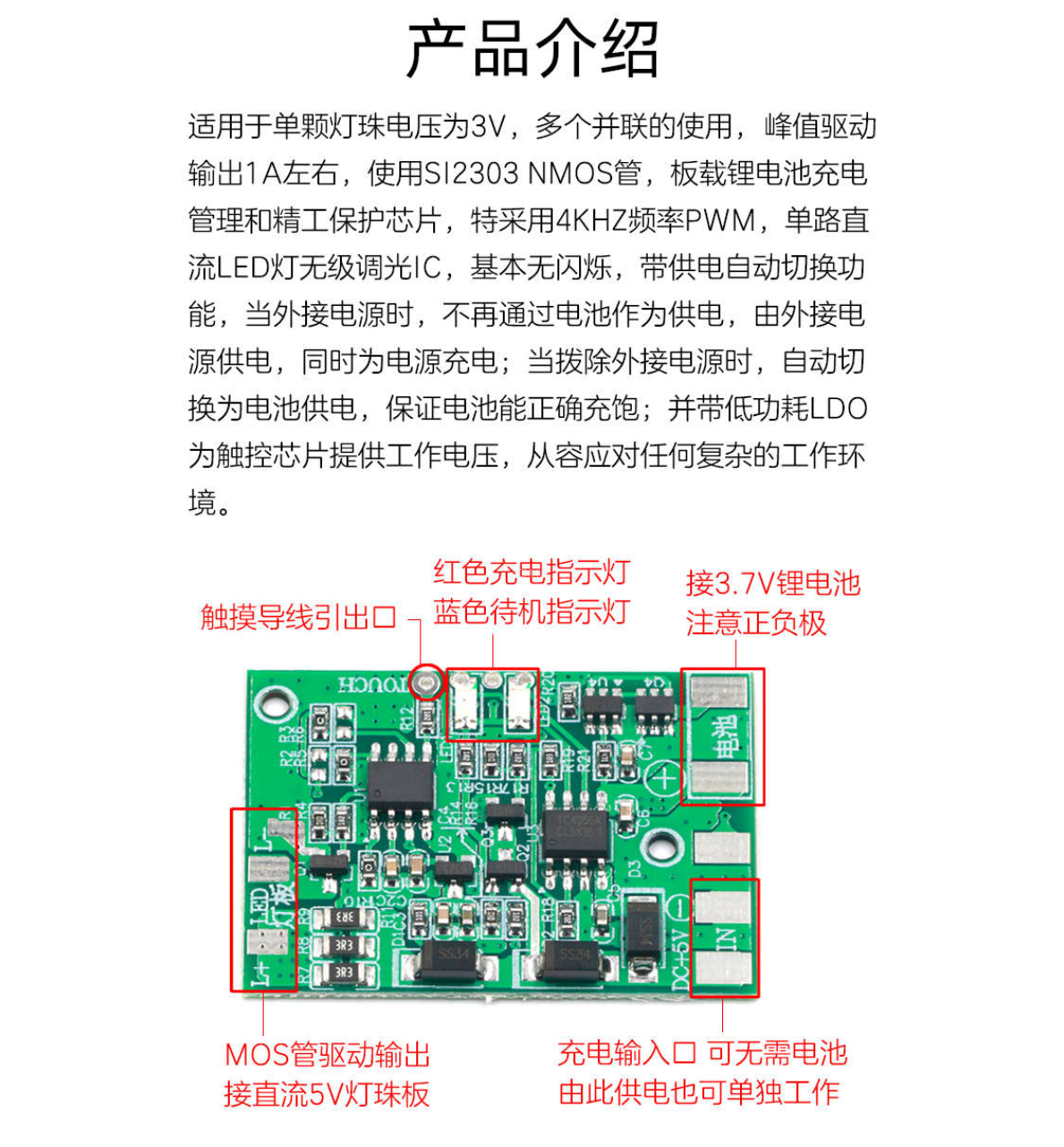 LED带充电保护无极触摸调光台灯直流控制板 DIY维修通用台灯电路