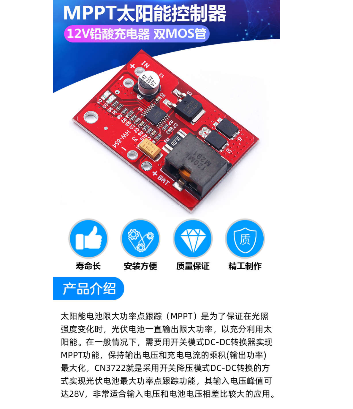 12V蓄电池 MPPT太阳能控制器 12V铅酸充电器 MPPT solar charger