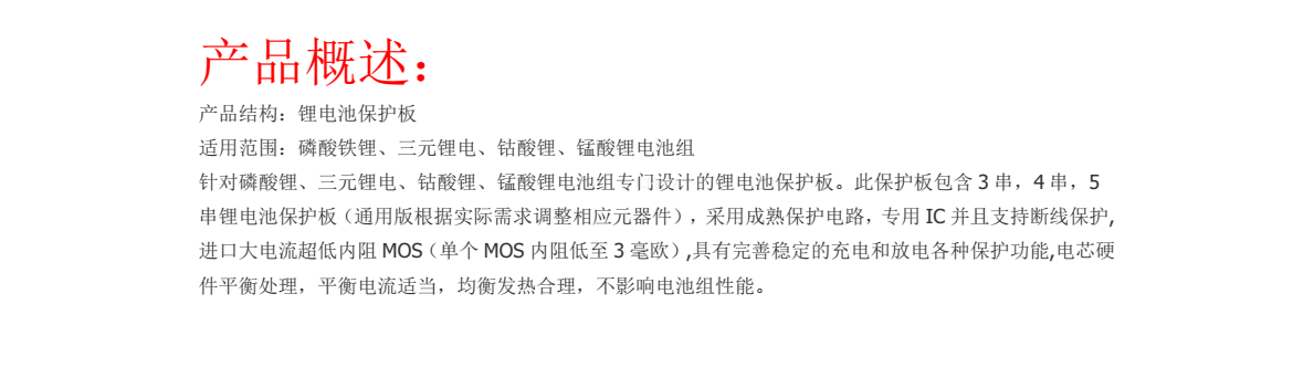 3串4串5串 12v锂电池 100A聚合物 磷酸铁锂电池保护板 带均衡