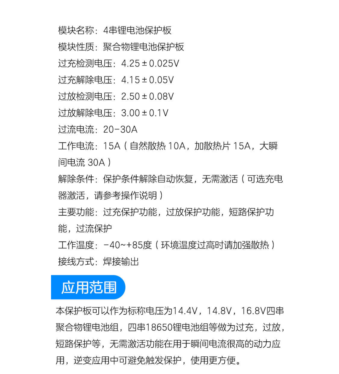 4串锂电池保护板 无需激活 自动恢复三串 10.8V 12.6V 30A大电流