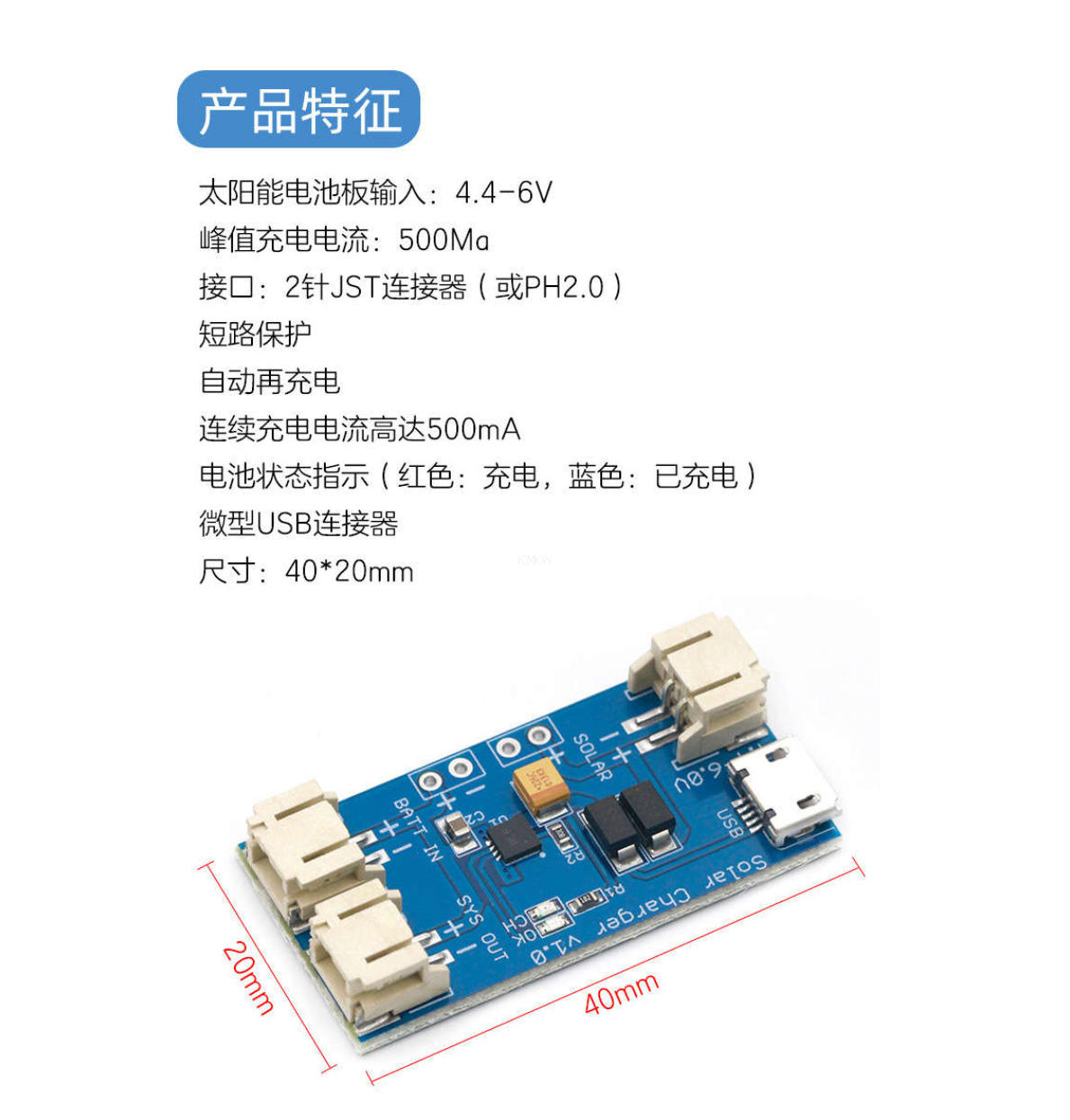 500MA 迷你太阳能锂电池USB充电板CN3065 MINI充电模块4.4-6V