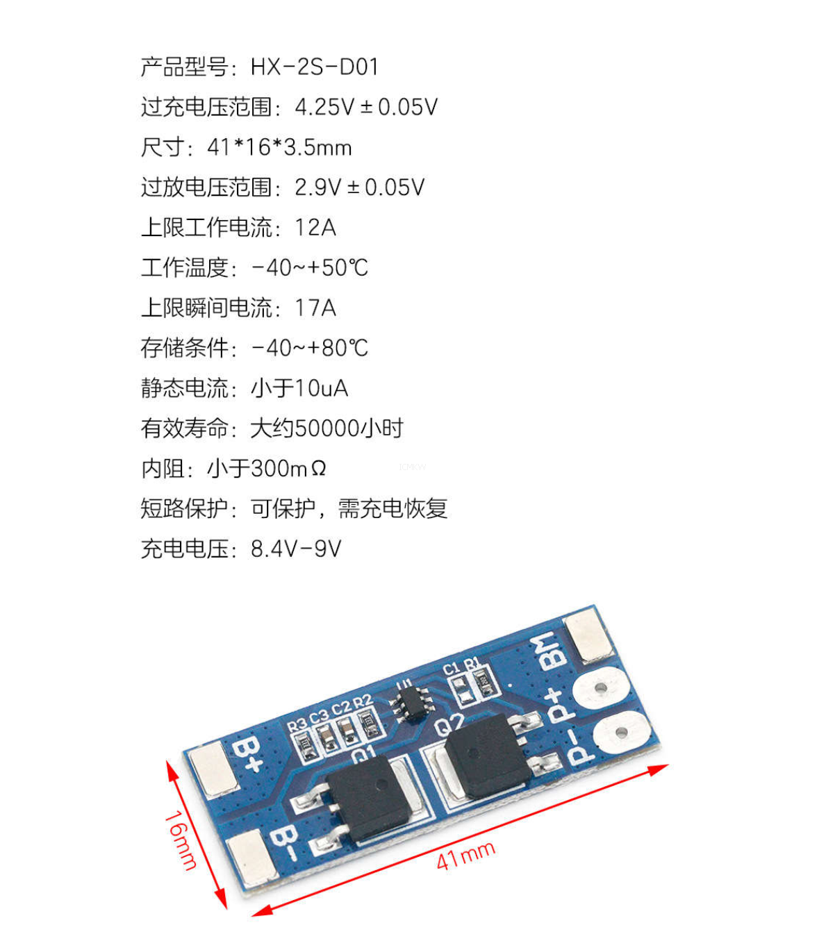 2串8.4V18650锂电保护板 7.4V锂电池保护板 8.4V过充过放保护 8A