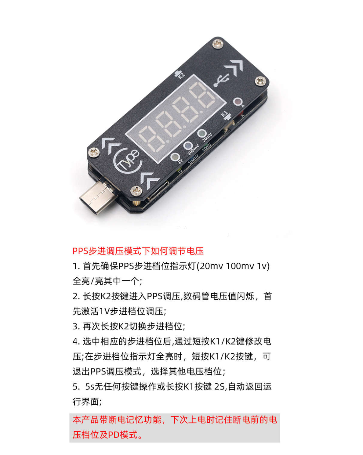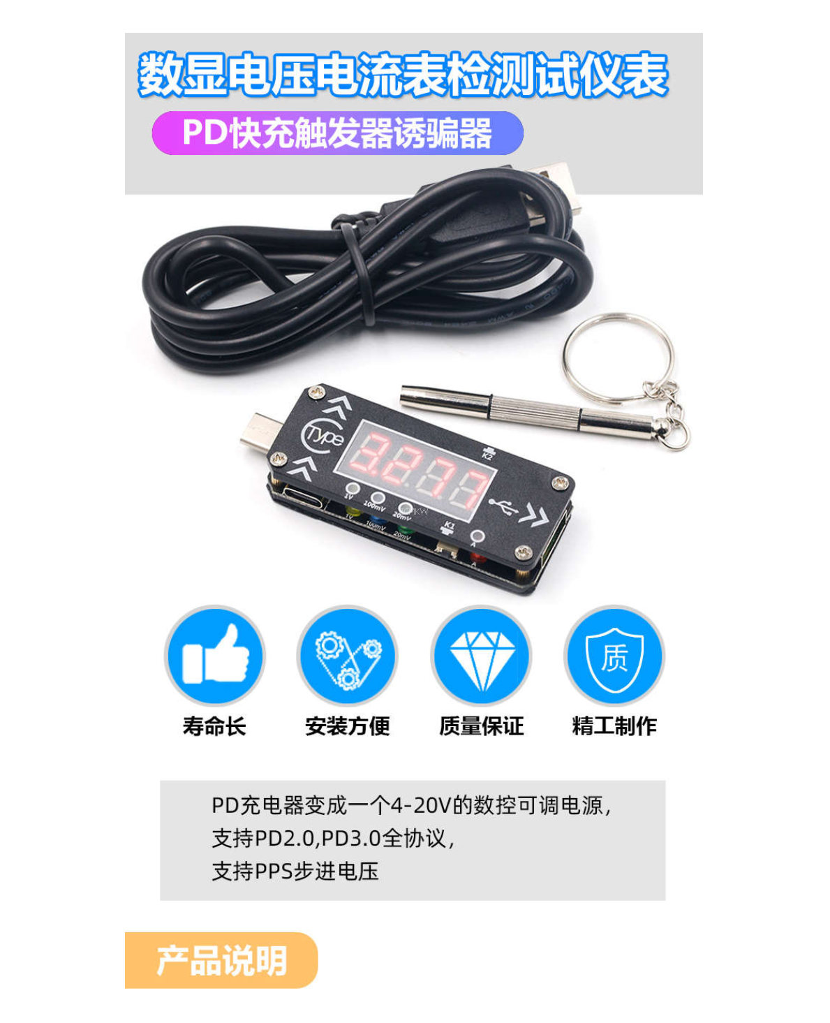 Type-C PD快充触发器诱骗器DC数显电压电流表检测试仪表全协议PPS