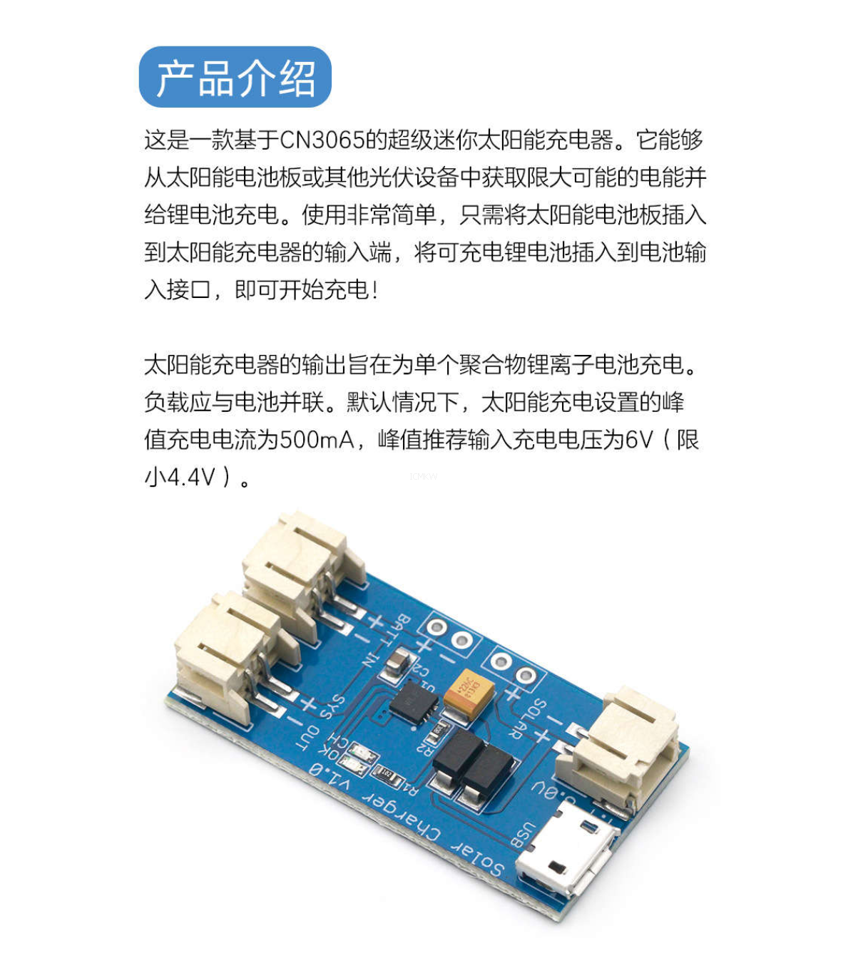 迷你太阳能锂电池USB充电板 MINI充电模块 500MA 4.4V-6V