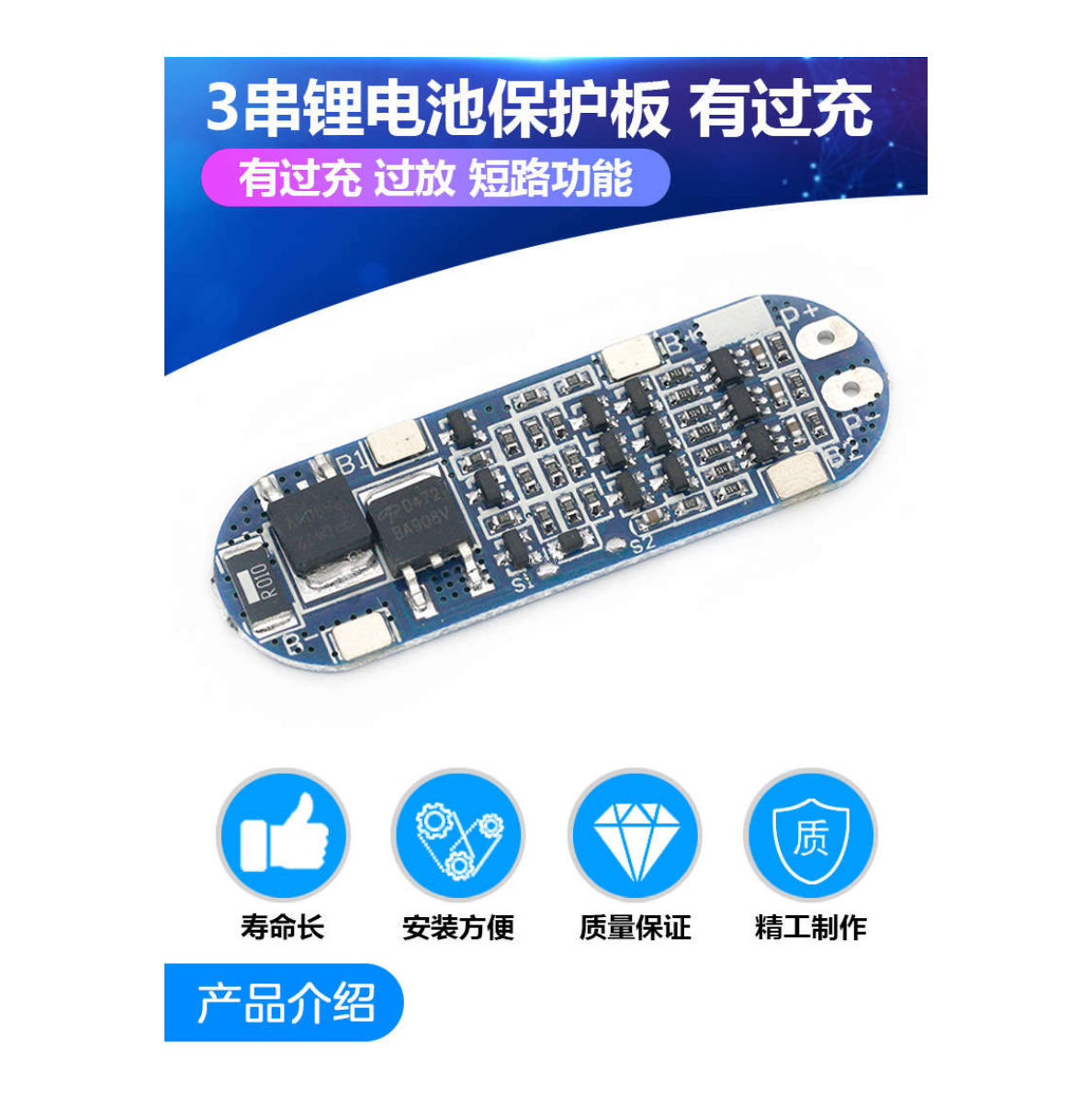 3串11.1V 12V 12.6V锂电池保护板 有过充 过放 短路功能 10A限流