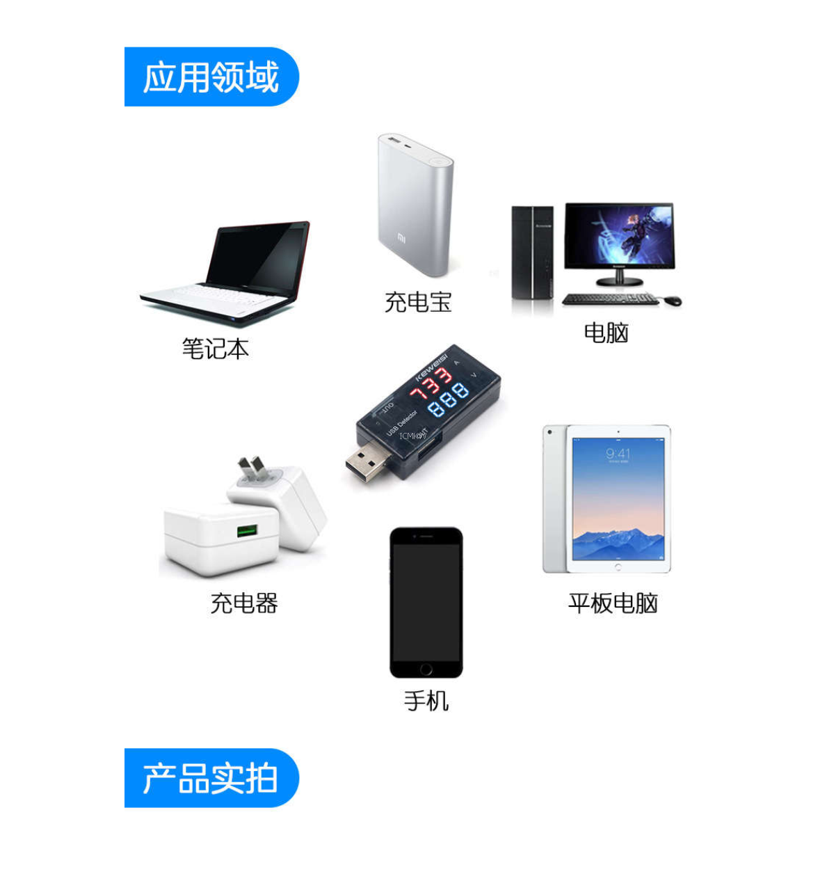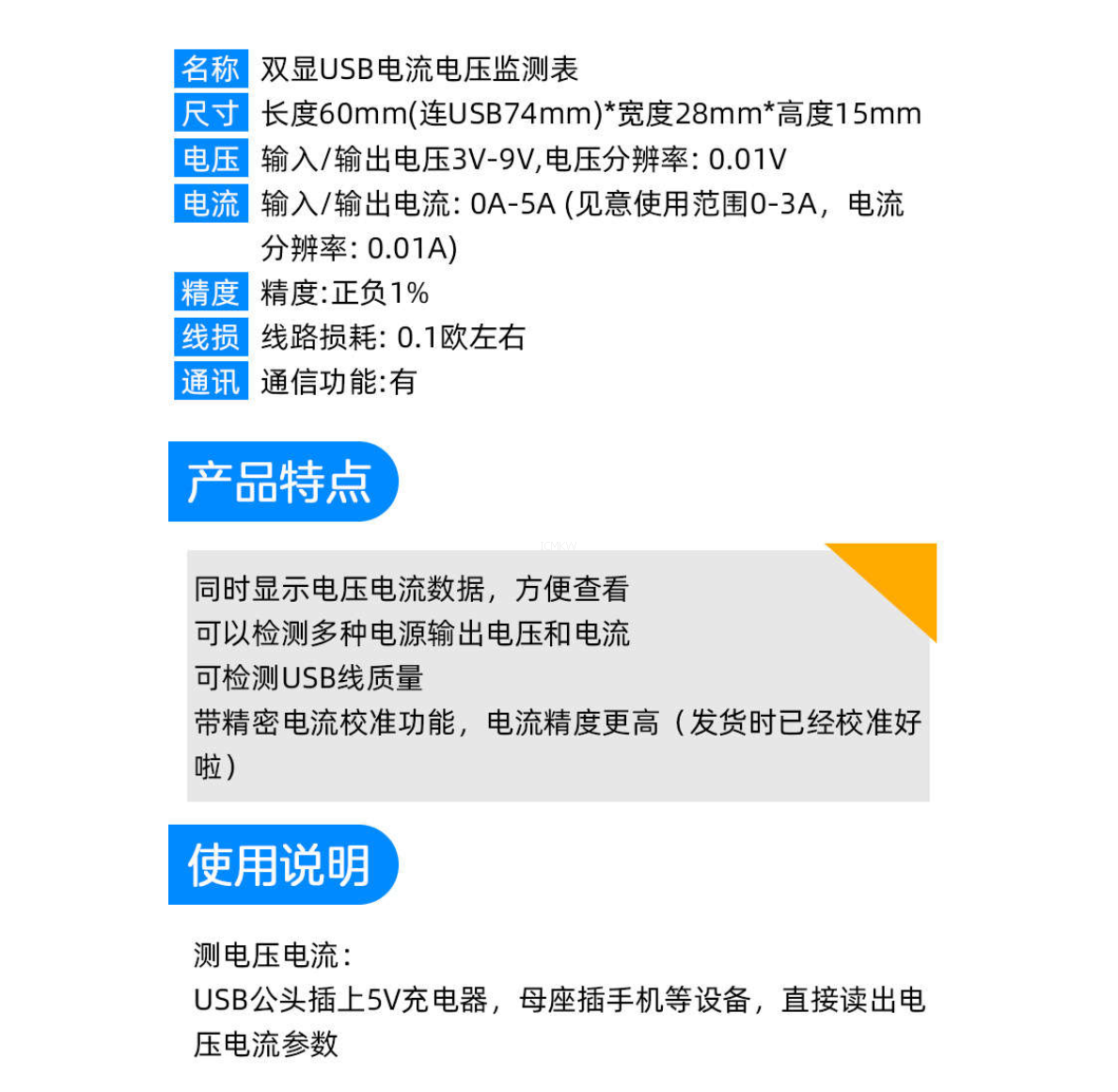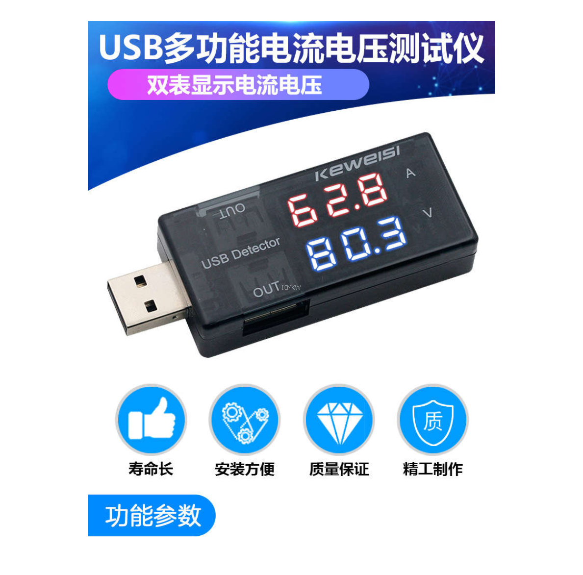 USB电流电压测试仪USB电压电流表 USB电流电压测试仪双表显示