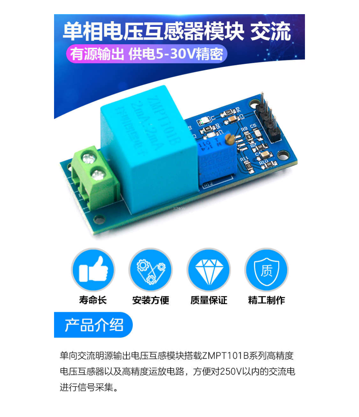 电压互感器模块 单相 交流 有源输出 电压传感器模块 互感模块