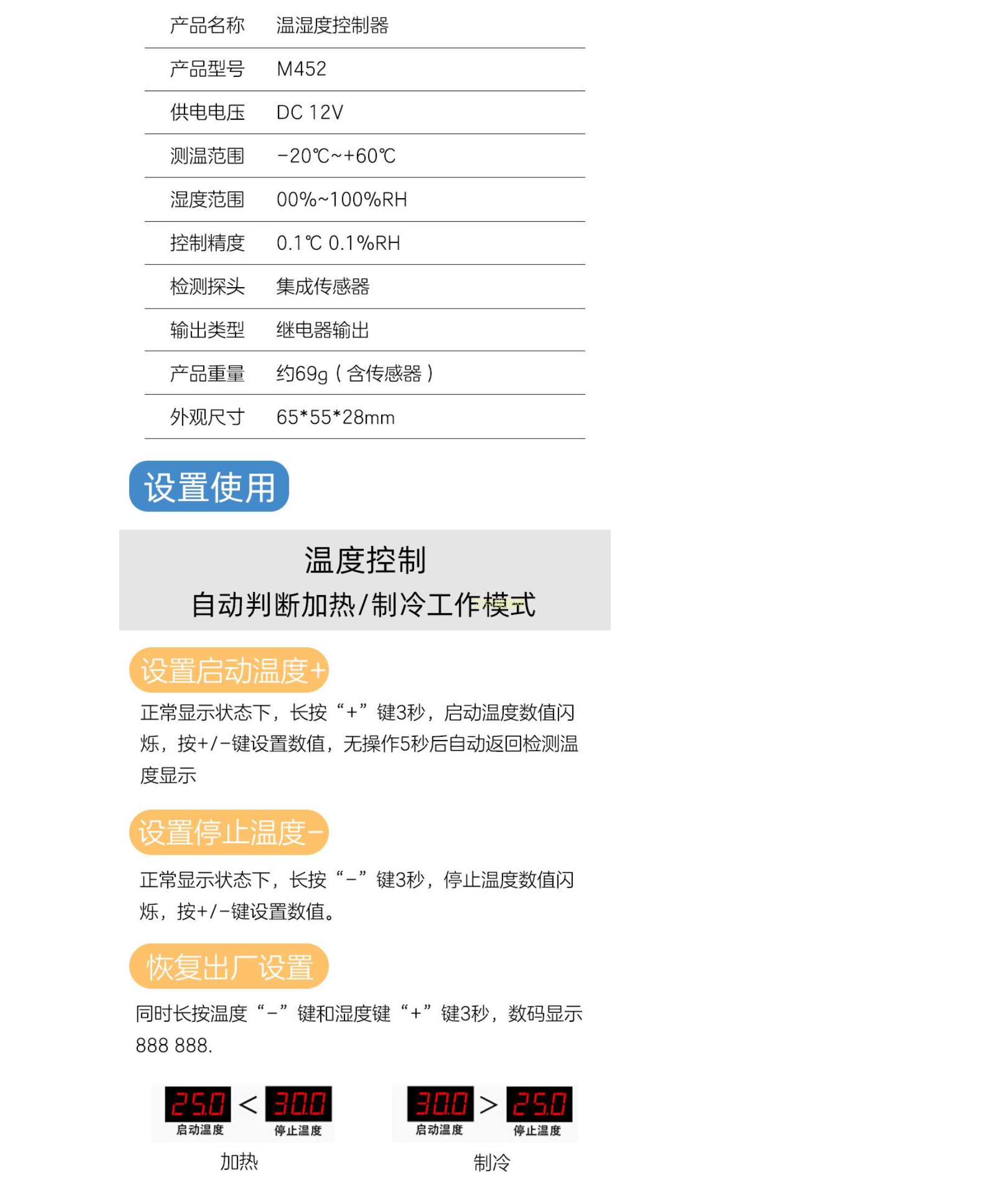 XH-M452 温湿度控制模块数显字高精度双输出自动恒温恒湿控制板