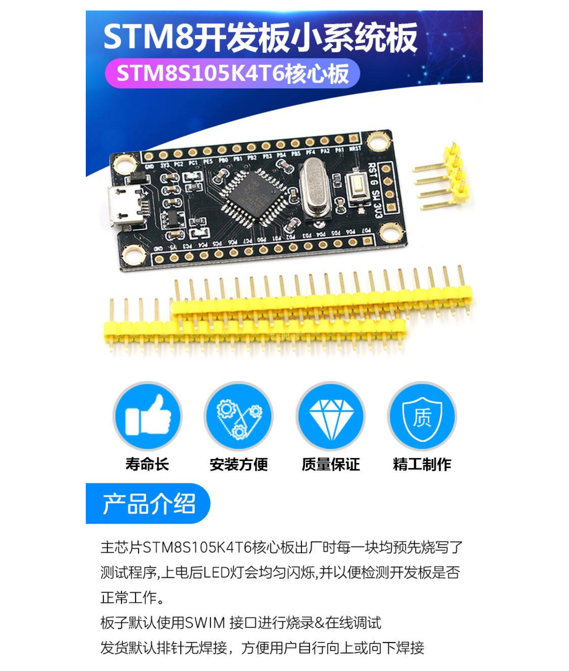 STM8S105K4T6开发板 STM8开发板单片机核心板 学习板