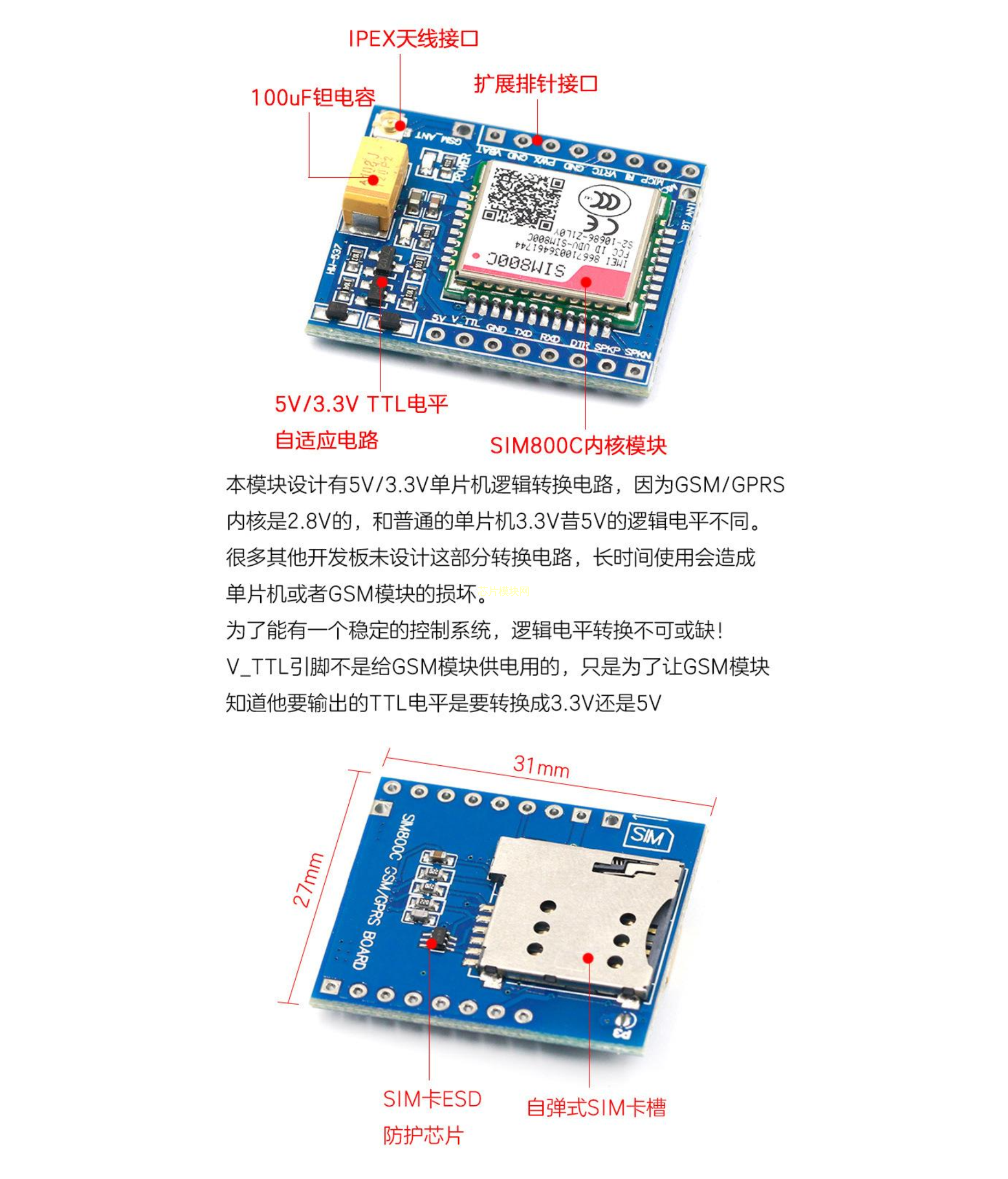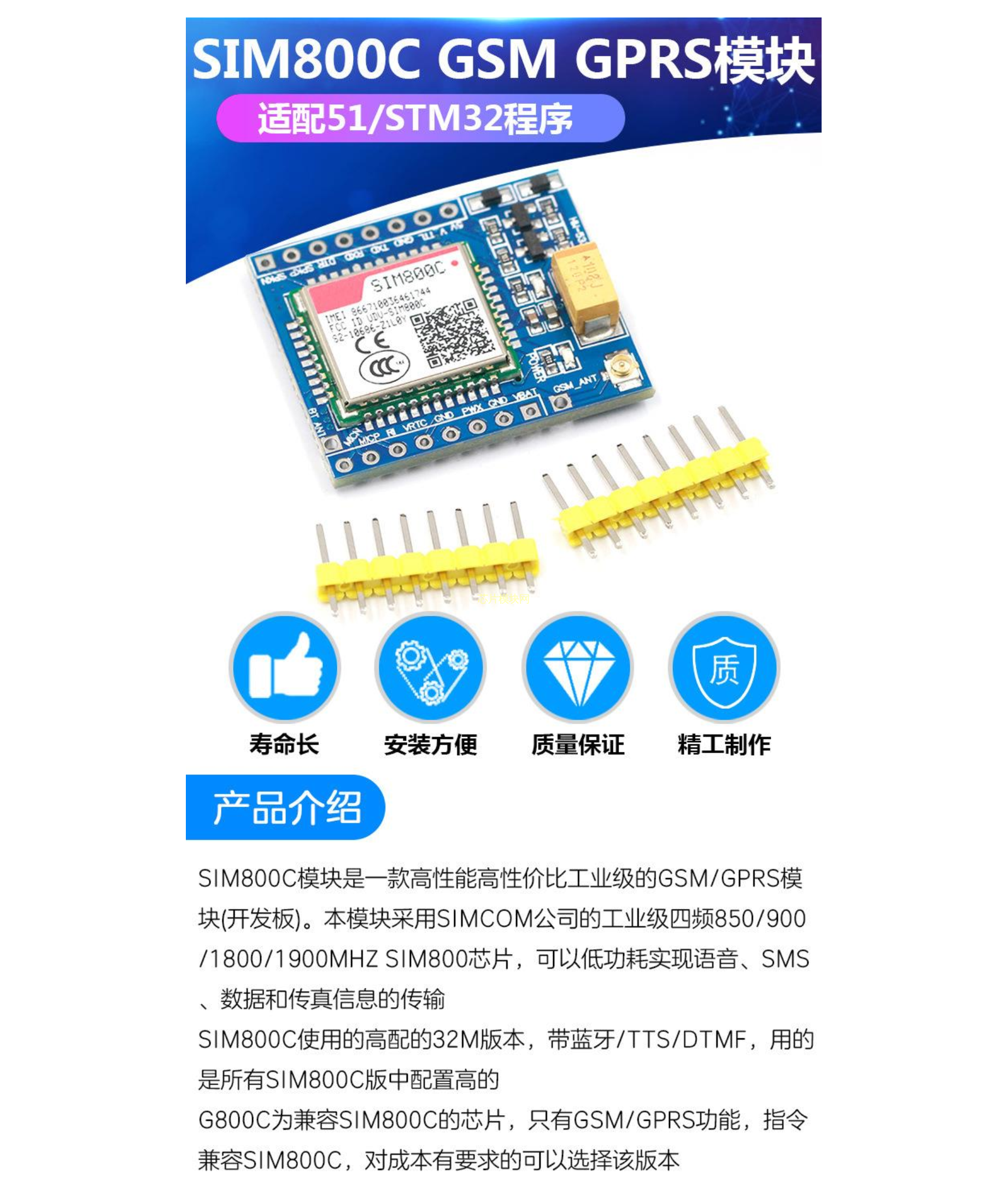 SIM800C GSM GPRS模块高配带蓝牙 短信 适配51/STM32程序