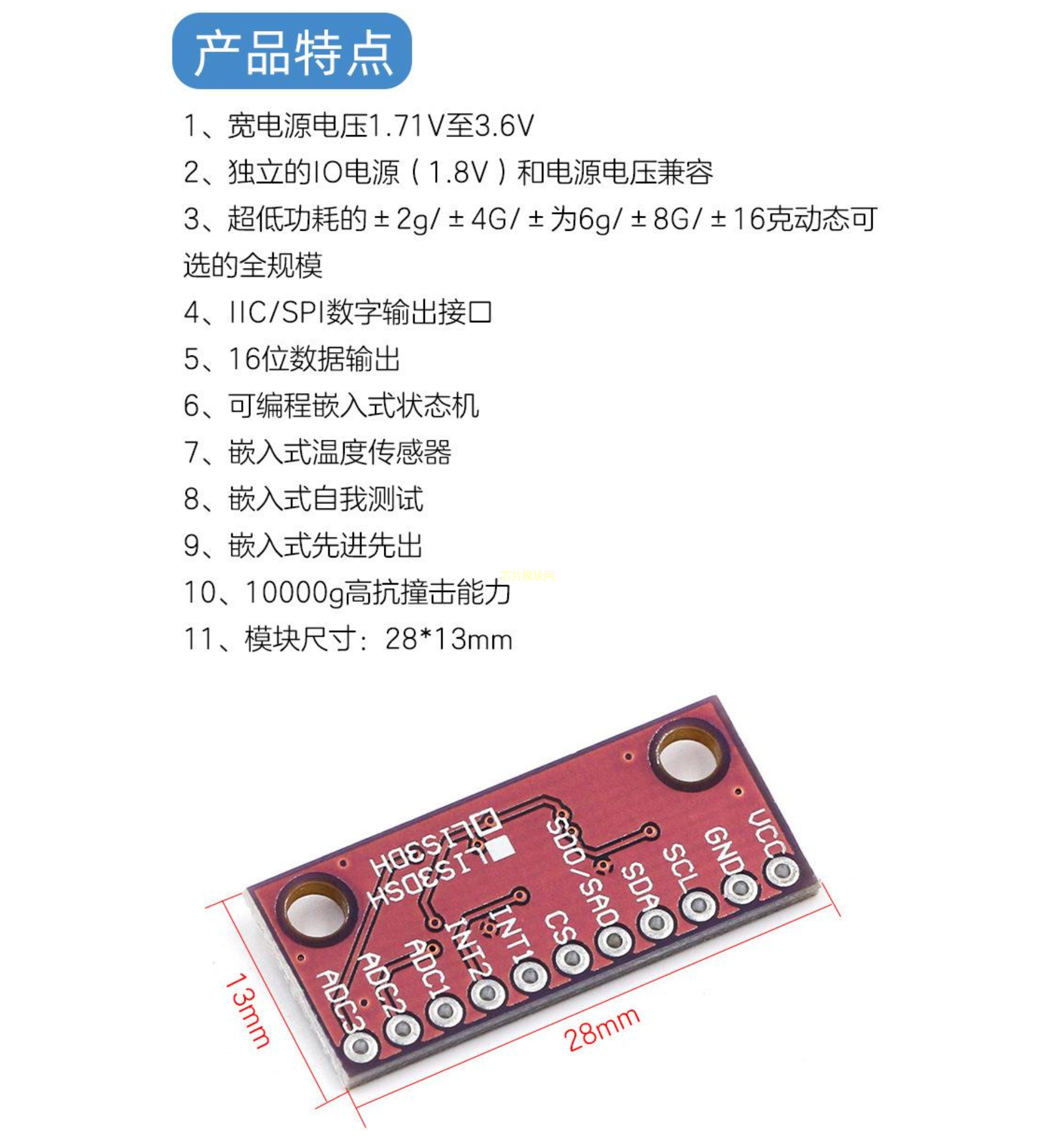 LIS3DSH 三轴高分辨率 加速度计 模块 LIS3DH 三轴加速度