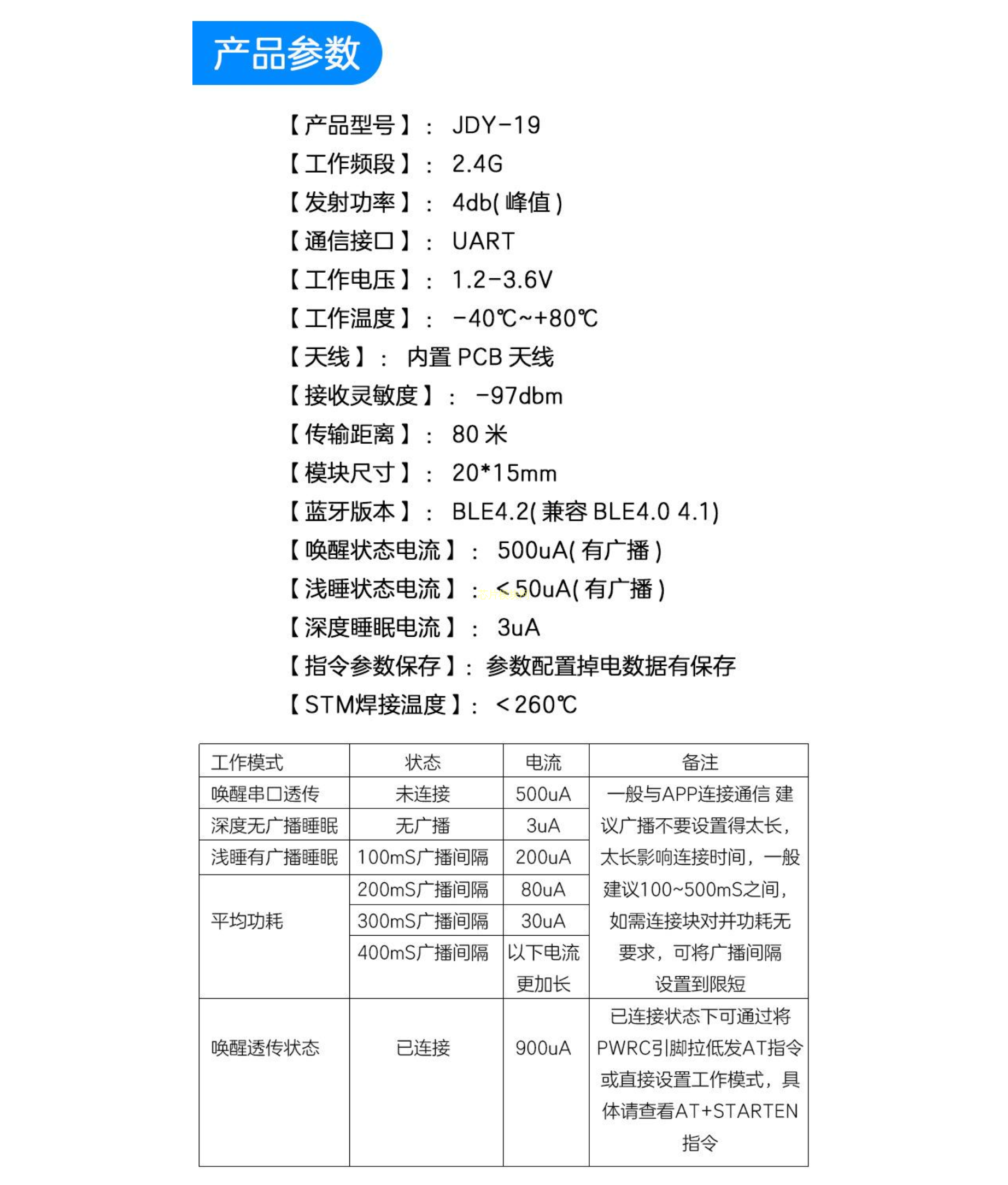 JDY-19 超低功耗蓝牙模块 蓝牙4.2超低功耗模块 超低功耗BLE