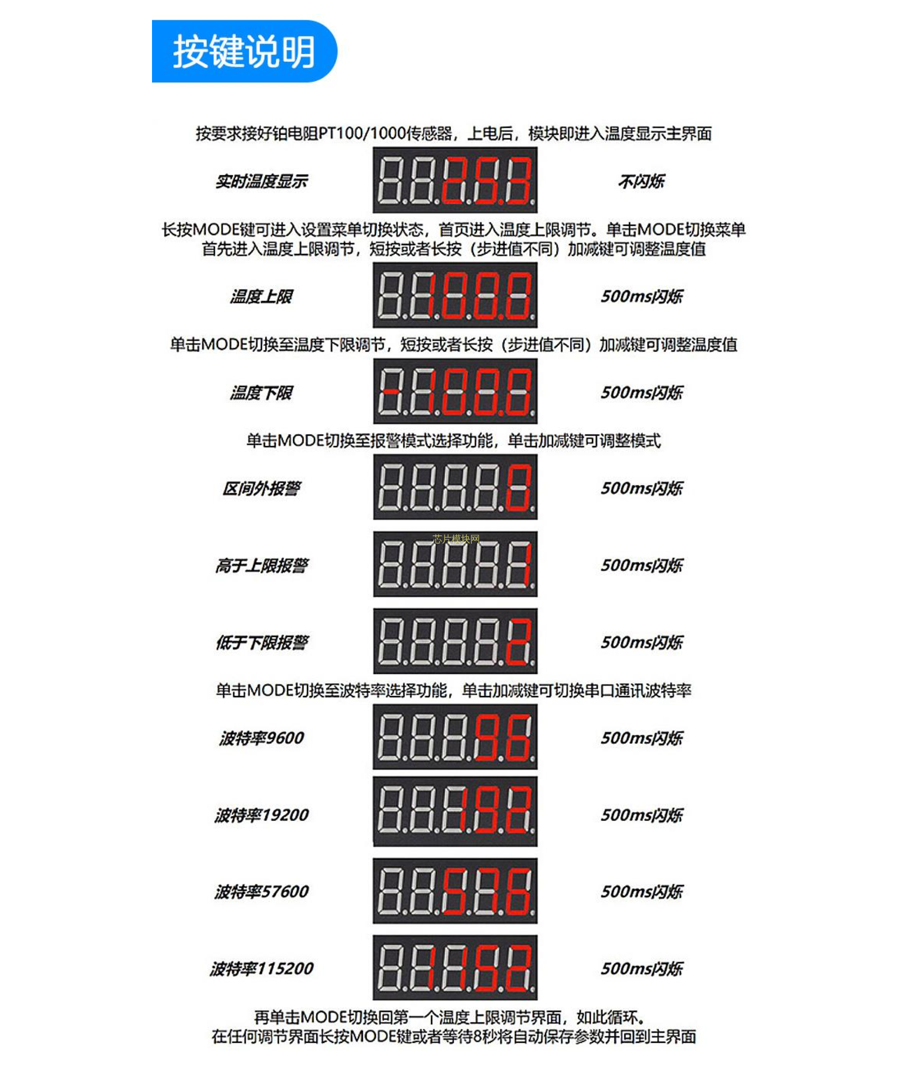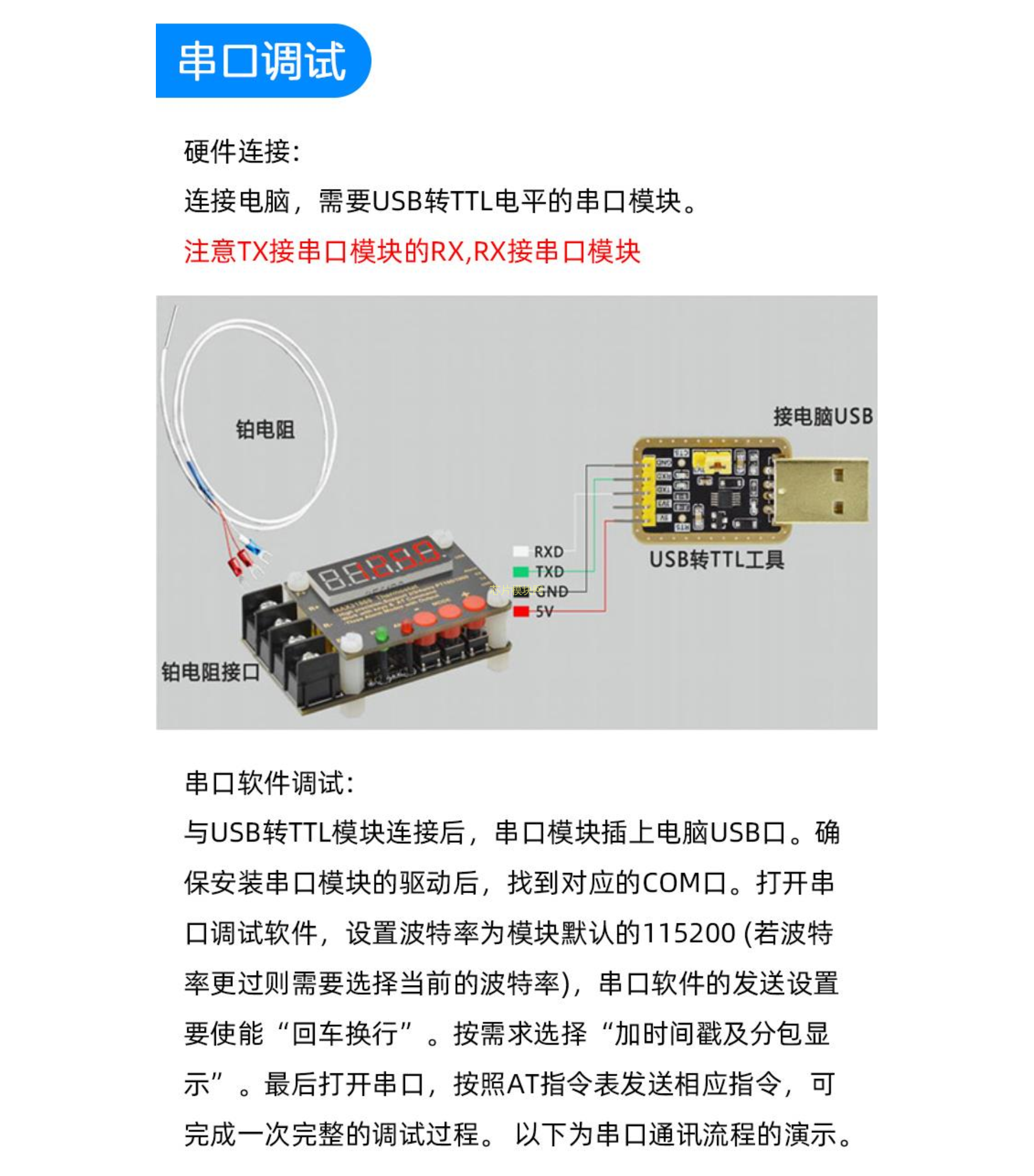 MAX31865数显温控器模块 上位机调试 3种报警模式AT指令 串口输出