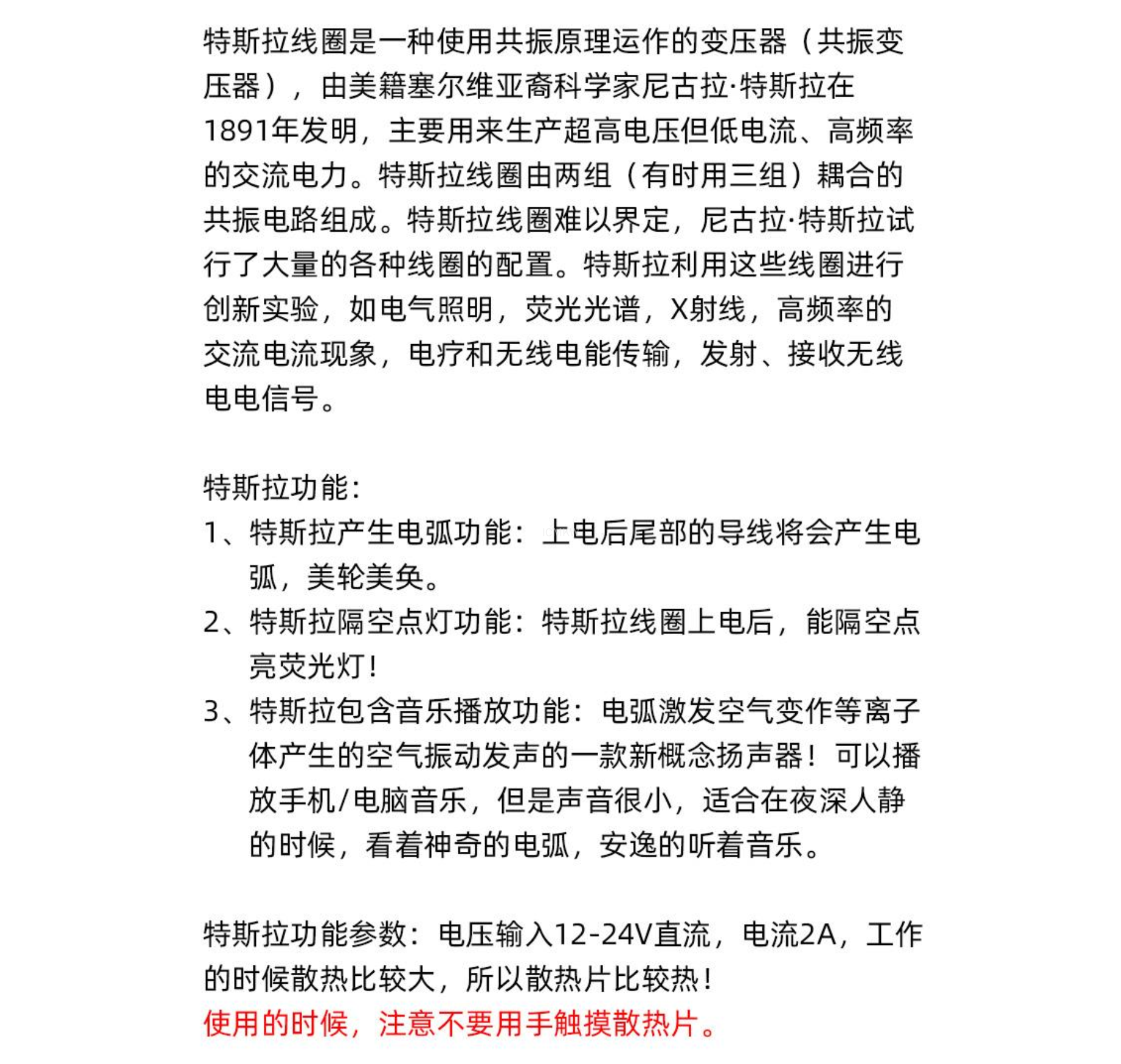 迷你音乐特斯拉线圈隔空输电弧套件 魔术道具 隔空点灯 DIY散件